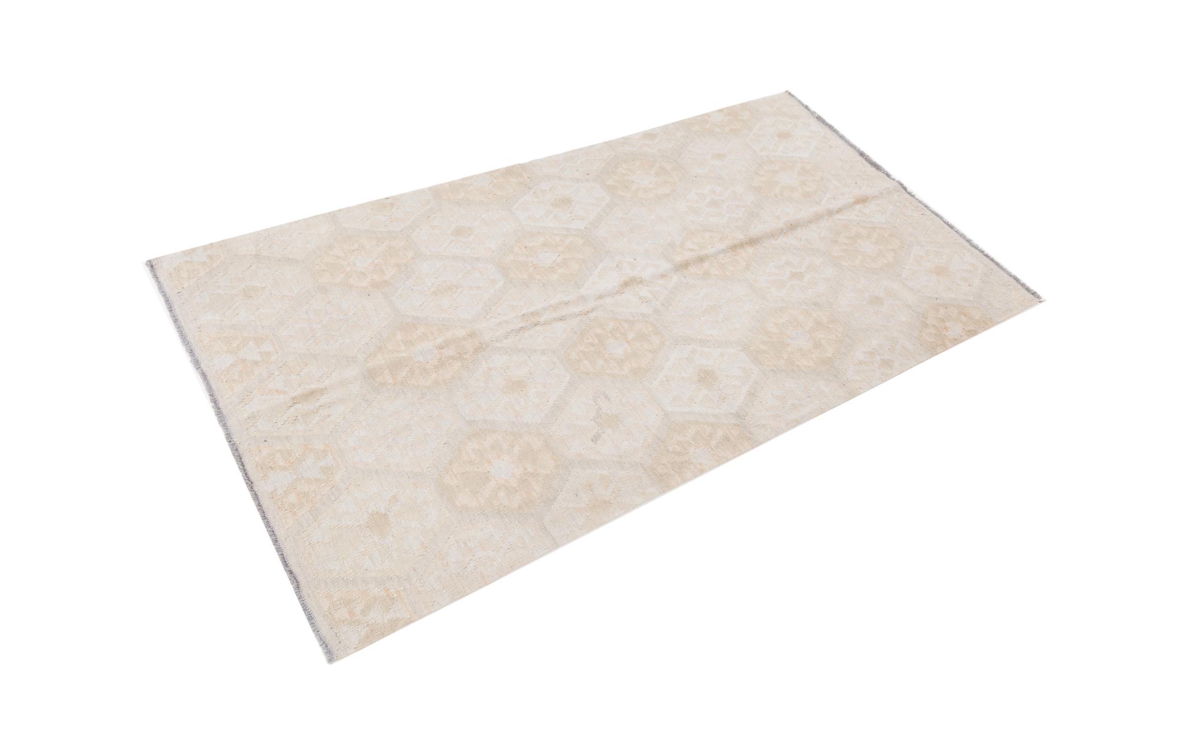 Our Kilim Afghan Heritage collection is in each and every detail exceptional. It combines the most traditional way of crafting a Kilim with contemporary modern design elements. Not only has this carpet been woven by hand, its wool has also been spun by hand like for Kilims centuries ago. The geometric patterns make this carpet a pure enrichment for modern interior concepts. It is going to deeply impress you and your guests. You won't get more value for your money than for this Kilim Heritage.