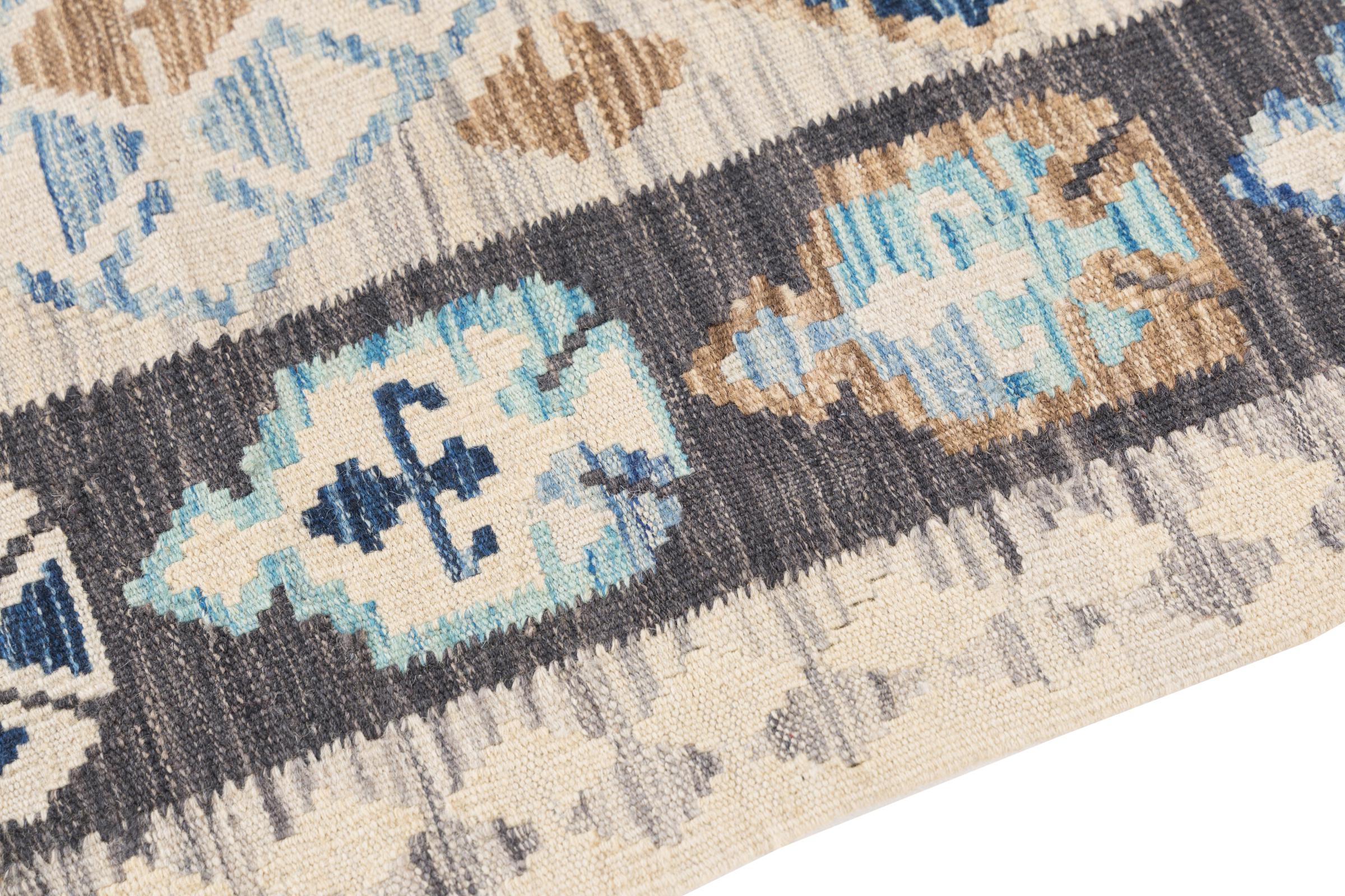 Our Kilim Afghan Heritage collection is in each and every detail exceptional. It combines the most traditional way of crafting a Kilim with contemporary modern design elements. Not only has this carpet been woven by hand, its wool has also been spun by hand like for Kilims centuries ago. The geometric patterns make this carpet a pure enrichment for modern interior concepts. It is going to deeply impress you and your guests. You won't get more value for your money than for this Kilim Heritage.