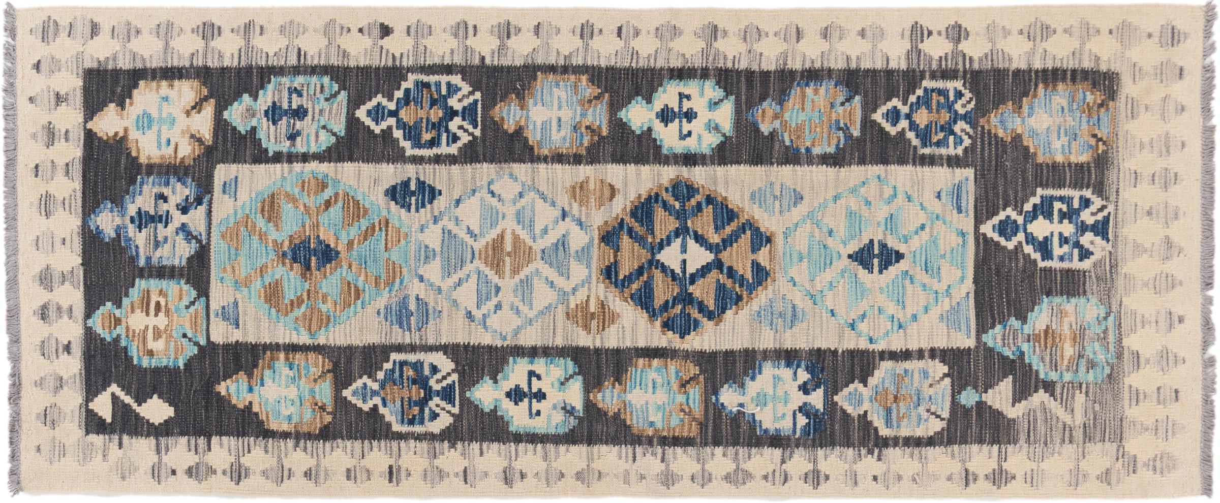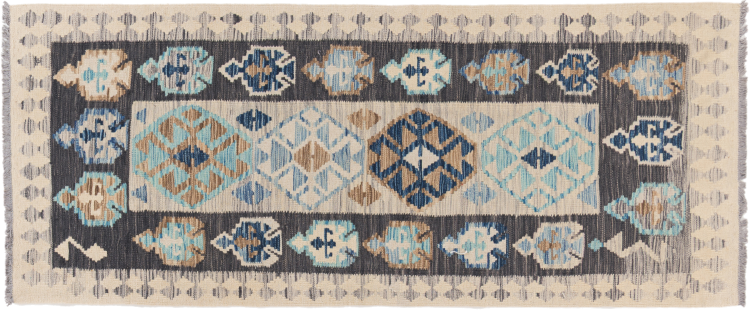 Carpet ID: 2949880049944 Size: 190x77 cm Thickness: ap. 3 mm Manufacturing: Woven by hand Pile: Handspun wool Warp: Sheep wool Origin: Afghanistan Age: New Weight: ap. 2 kg Also know as Kilim, Qilim, Chilim, Afgan, Afghán In stock: Unique - Only 1 in stock