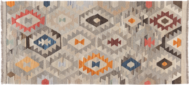 Carpet ID: 2949640051793 Size: 195x87 cm Thickness: ap. 3 mm Manufacturing: Woven by hand Pile: Handspun wool Warp: Sheep wool Origin: Afghanistan Age: New Weight: ap. 3 kg Also know as Kilim, Qilim, Chilim, Afgan, Afghán In stock: Unique - Only 1 in stock