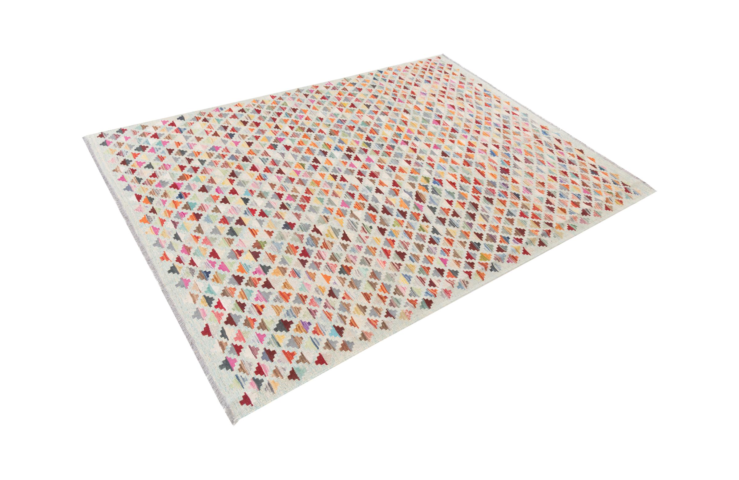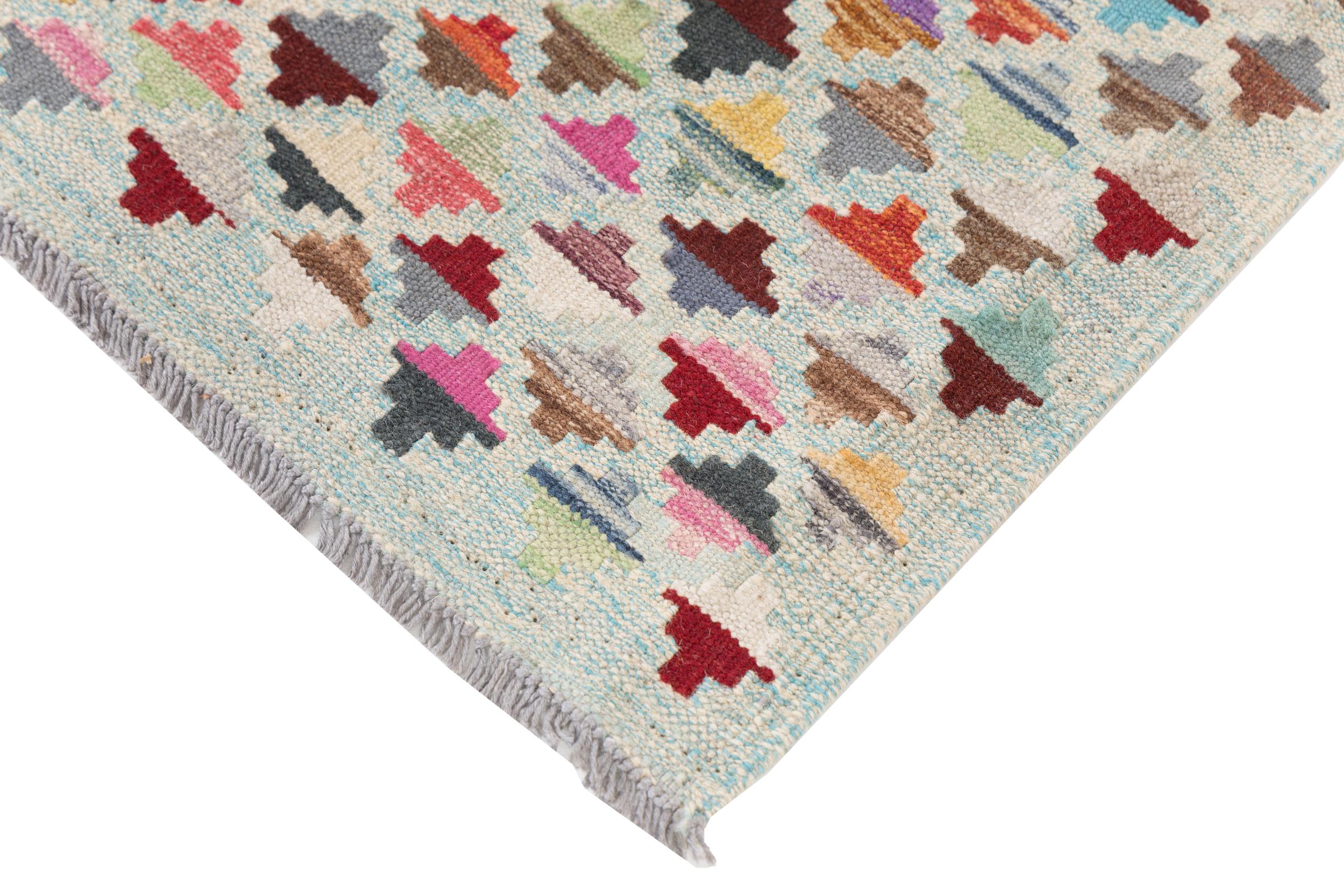 Our Kilim Afghan Heritage collection is in each and every detail exceptional. It combines the most traditional way of crafting a Kilim with contemporary modern design elements. Not only has this carpet been woven by hand, its wool has also been spun by hand like for Kilims centuries ago. The geometric patterns make this carpet a pure enrichment for modern interior concepts. It is going to deeply impress you and your guests. You won't get more value for your money than for this Kilim Heritage.
