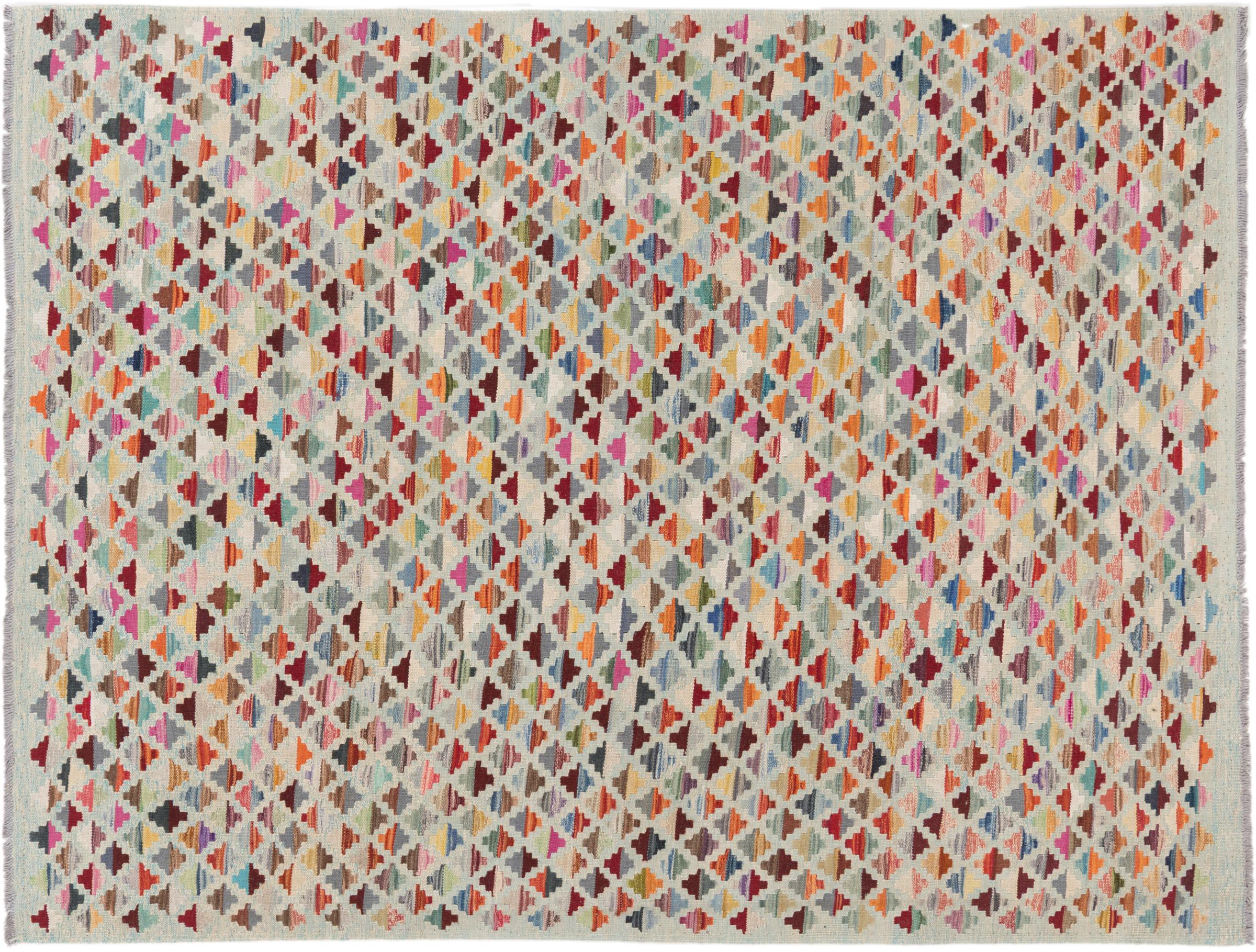Carpet ID: 2949260053982 Size: 200x155 cm Thickness: ap. 3 mm Manufacturing: Woven by hand Pile: Handspun wool Warp: Sheep wool Origin: Afghanistan Age: New Weight: ap. 5 kg Also know as Kilim, Qilim, Chilim, Afgan, Afghán In stock: Unique - Only 1 in stock