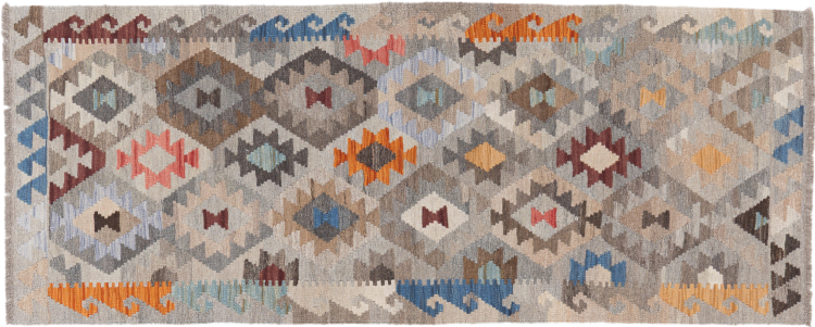 Carpet ID: 2941500051794 Size: 200x80 cm Thickness: ap. 3 mm Manufacturing: Woven by hand Pile: Handspun wool Warp: Sheep wool Origin: Afghanistan Age: New Weight: ap. 2 kg Also know as Kilim, Qilim, Chilim, Afgan, Afghán In stock: Unique - Only 1 in stock