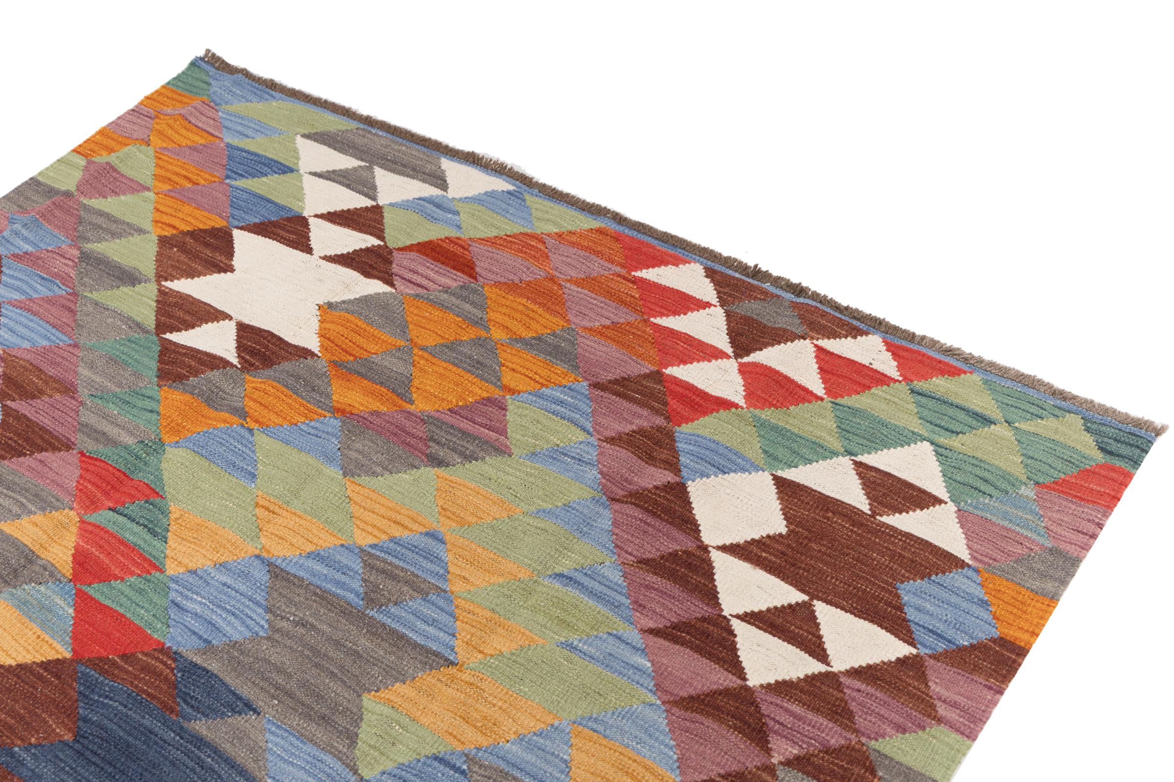 Our Kilim Afghan Heritage collection is in each and every detail exceptional. It combines the most traditional way of crafting a Kilim with contemporary modern design elements. Not only has this carpet been woven by hand, its wool has also been spun by hand like for Kilims centuries ago. The geometric patterns make this carpet a pure enrichment for modern interior concepts. It is going to deeply impress you and your guests. You won't get more value for your money than for this Kilim Heritage.