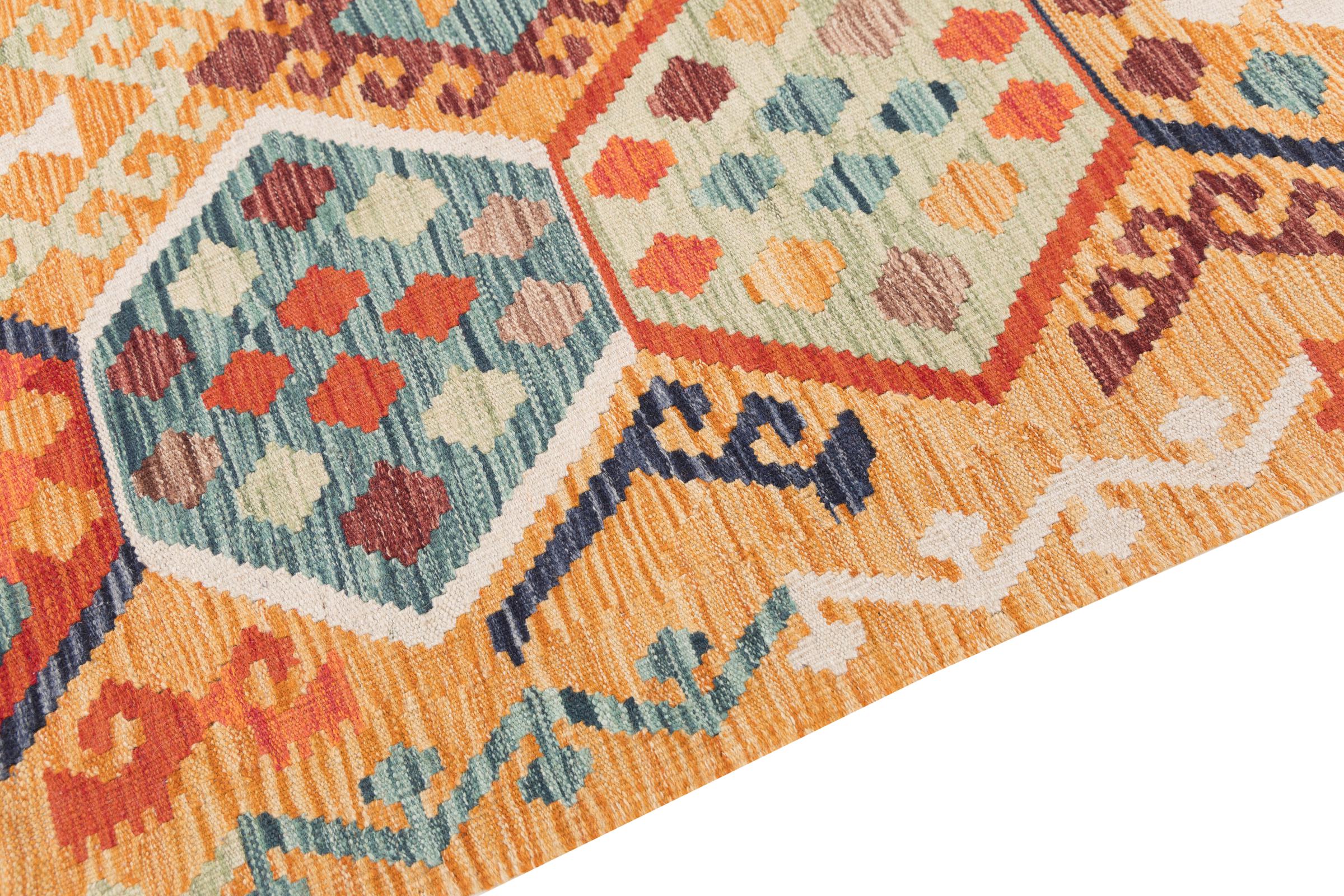 Our Kilim Afghan Heritage collection is in each and every detail exceptional. It combines the most traditional way of crafting a Kilim with contemporary modern design elements. Not only has this carpet been woven by hand, its wool has also been spun by hand like for Kilims centuries ago. The geometric patterns make this carpet a pure enrichment for modern interior concepts. It is going to deeply impress you and your guests. You won't get more value for your money than for this Kilim Heritage.