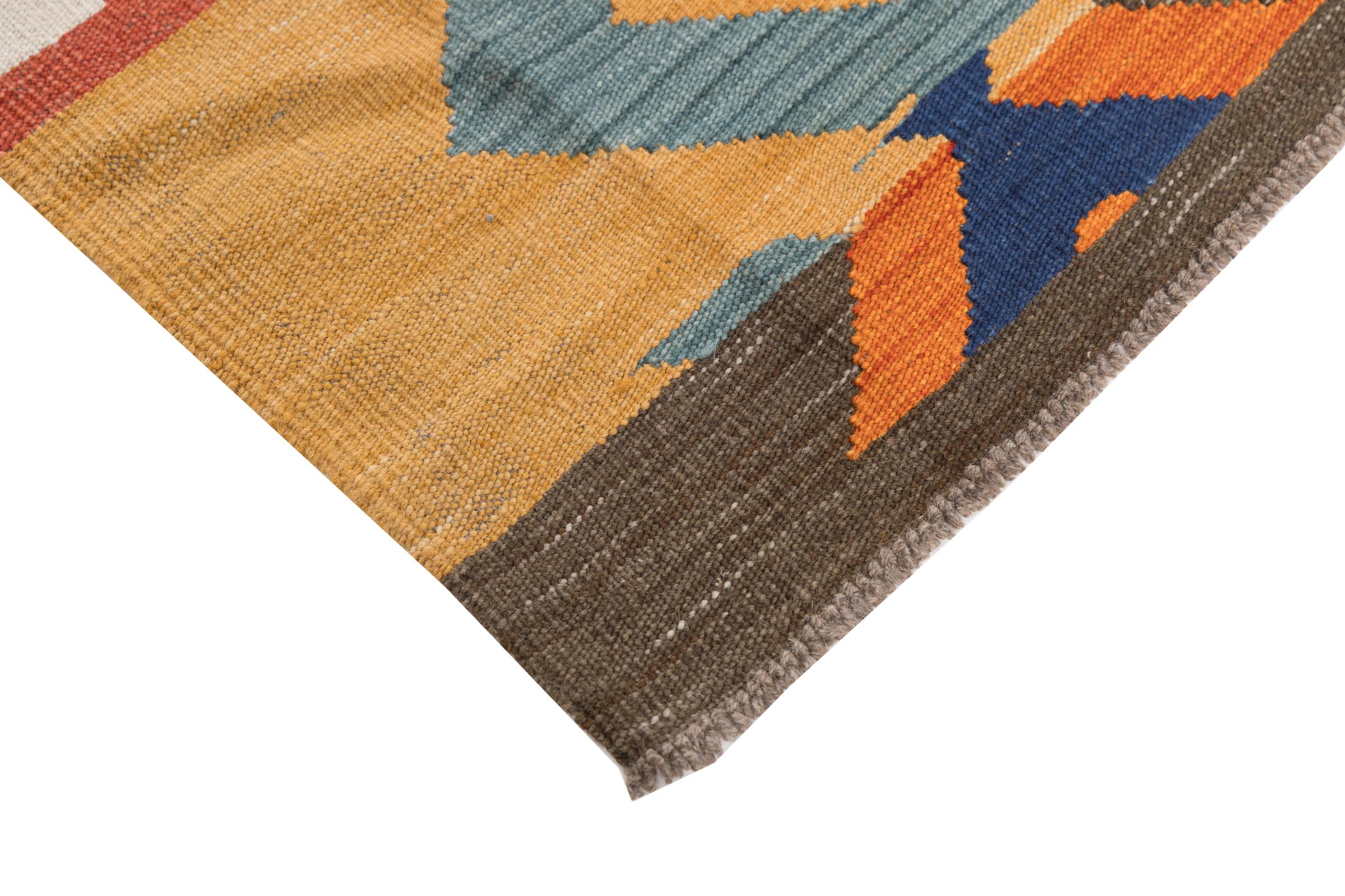 Our Kilim Afghan Heritage collection is in each and every detail exceptional. It combines the most traditional way of crafting a Kilim with contemporary modern design elements. Not only has this carpet been woven by hand, its wool has also been spun by hand like for Kilims centuries ago. The geometric patterns make this carpet a pure enrichment for modern interior concepts. It is going to deeply impress you and your guests. You won't get more value for your money than for this Kilim Heritage.