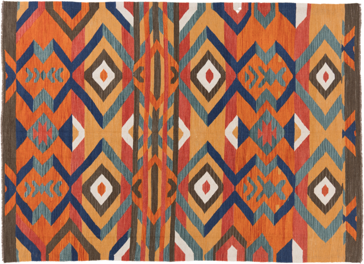 These kilim rugs show a decisive difference to hand-knotted rugs - they are woven by hand. Thus, they do not have a high pile of wool and are often flatter and rougher than knotted wool rugs. Their making is less elaborate and so they are usually much more affordable. As an advantage, kilim rugs are also much lighter and can be laid out from the front and back side. Hand-woven kilims originally come from the former Persia and are now also often made in Afghanistan. They have rather simple, straightforward patterns, which are determined by their weaving technique.