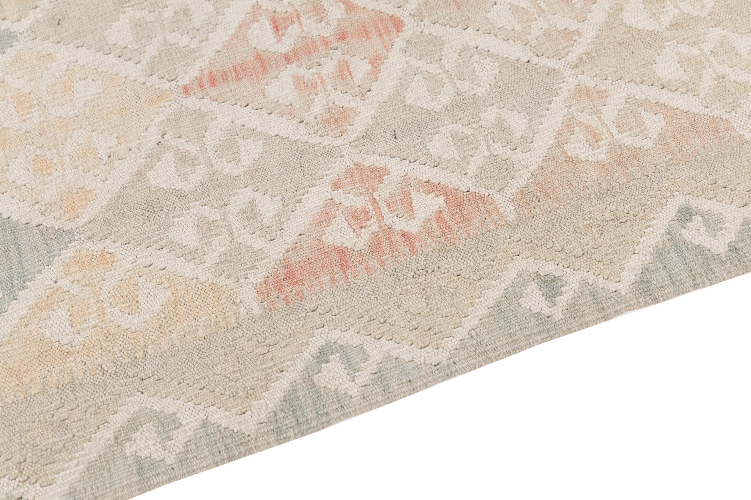 Our Kilim Afghan Heritage collection is in each and every detail exceptional. It combines the most traditional way of crafting a Kilim with contemporary modern design elements. Not only has this carpet been woven by hand, its wool has also been spun by hand like for Kilims centuries ago. The geometric patterns make this carpet a pure enrichment for modern interior concepts. It is going to deeply impress you and your guests. You won't get more value for your money than for this Kilim Heritage.
