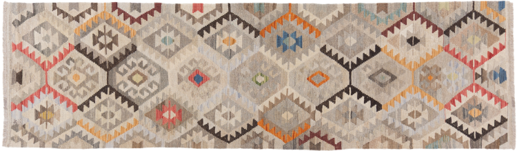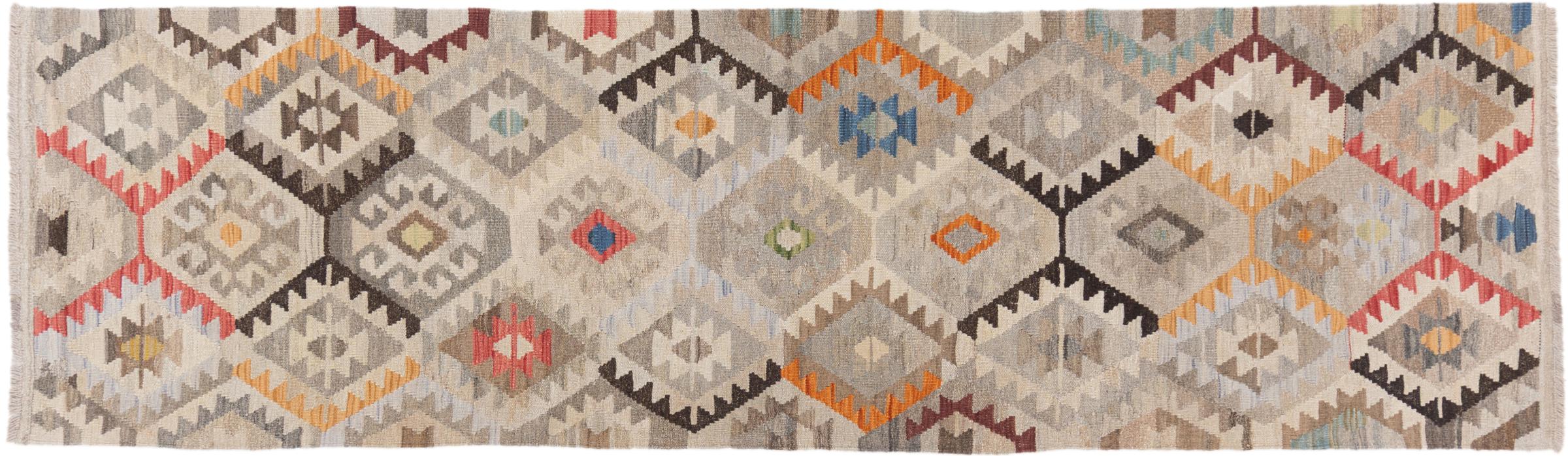 Carpet ID: 2944410055260 Size: 287x79 cm Thickness: ap. 3 mm Manufacturing: Woven by hand Pile: Handspun wool Warp: Sheep wool Origin: Afghanistan Age: New Weight: ap. 3 kg Also know as Kilim, Qilim, Chilim, Afgan, Afghán In stock: Unique - Only 1 in stock