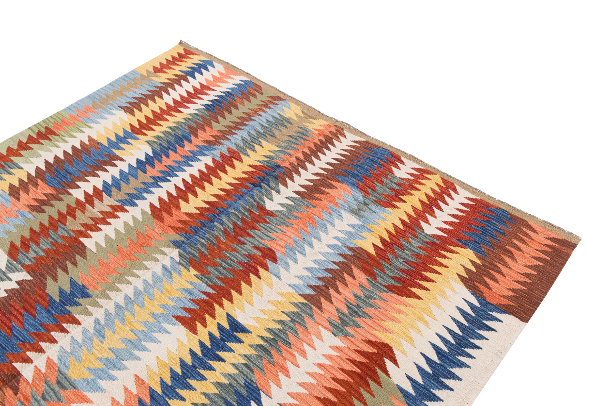Our Kilim Afghan Heritage collection is in each and every detail exceptional. It combines the most traditional way of crafting a Kilim with contemporary modern design elements. Not only has this carpet been woven by hand, its wool has also been spun by hand like for Kilims centuries ago. The geometric patterns make this carpet a pure enrichment for modern interior concepts. It is going to deeply impress you and your guests. You won't get more value for your money than for this Kilim Heritage.