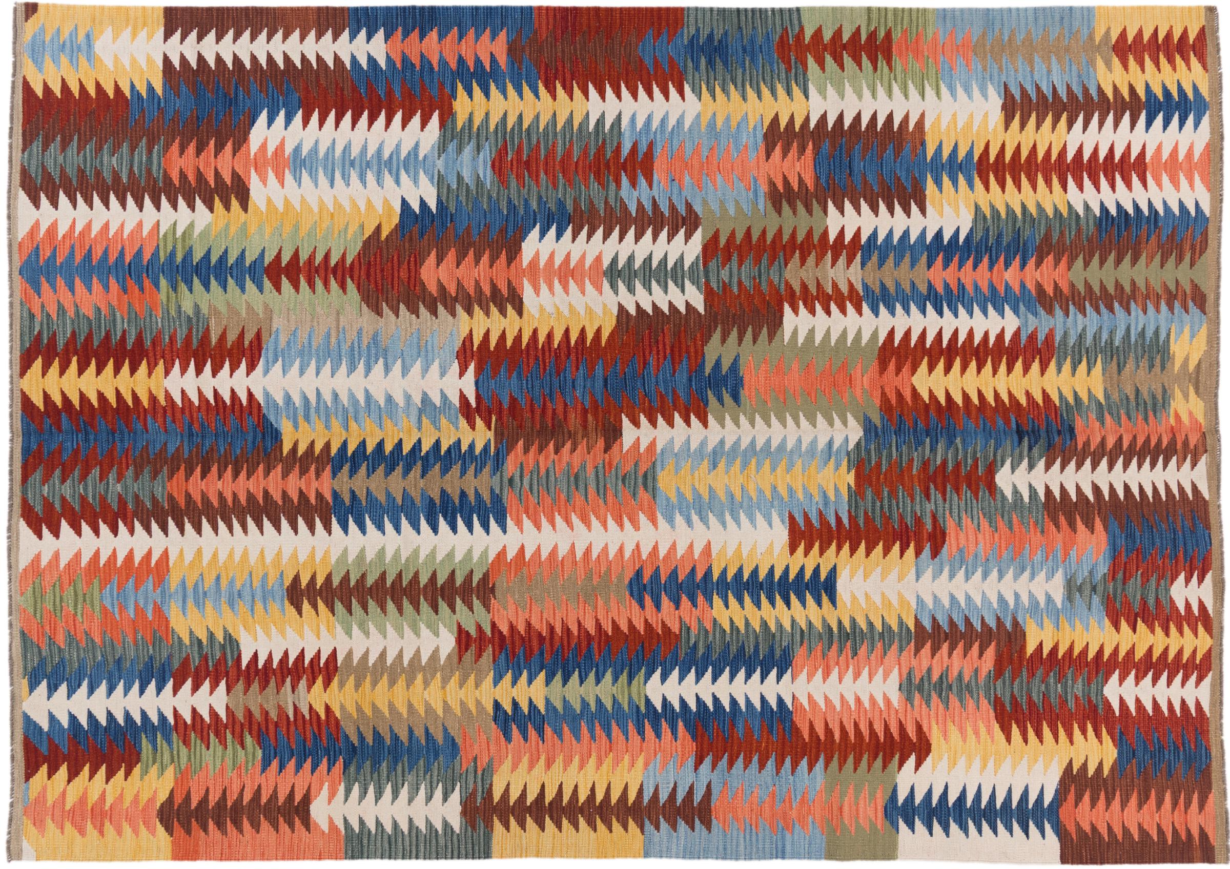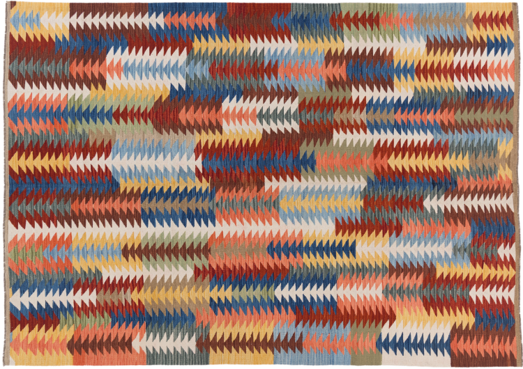 Carpet ID: 2945690047651 Size: 289x205 cm Thickness: ap. 3 mm Manufacturing: Woven by hand Pile: Handspun wool Warp: Sheep wool Origin: Afghanistan Age: New Weight: ap. 9 kg Also know as Kilim, Qilim, Chilim, Afgan, Afghán In stock: Unique - Only 1 in stock