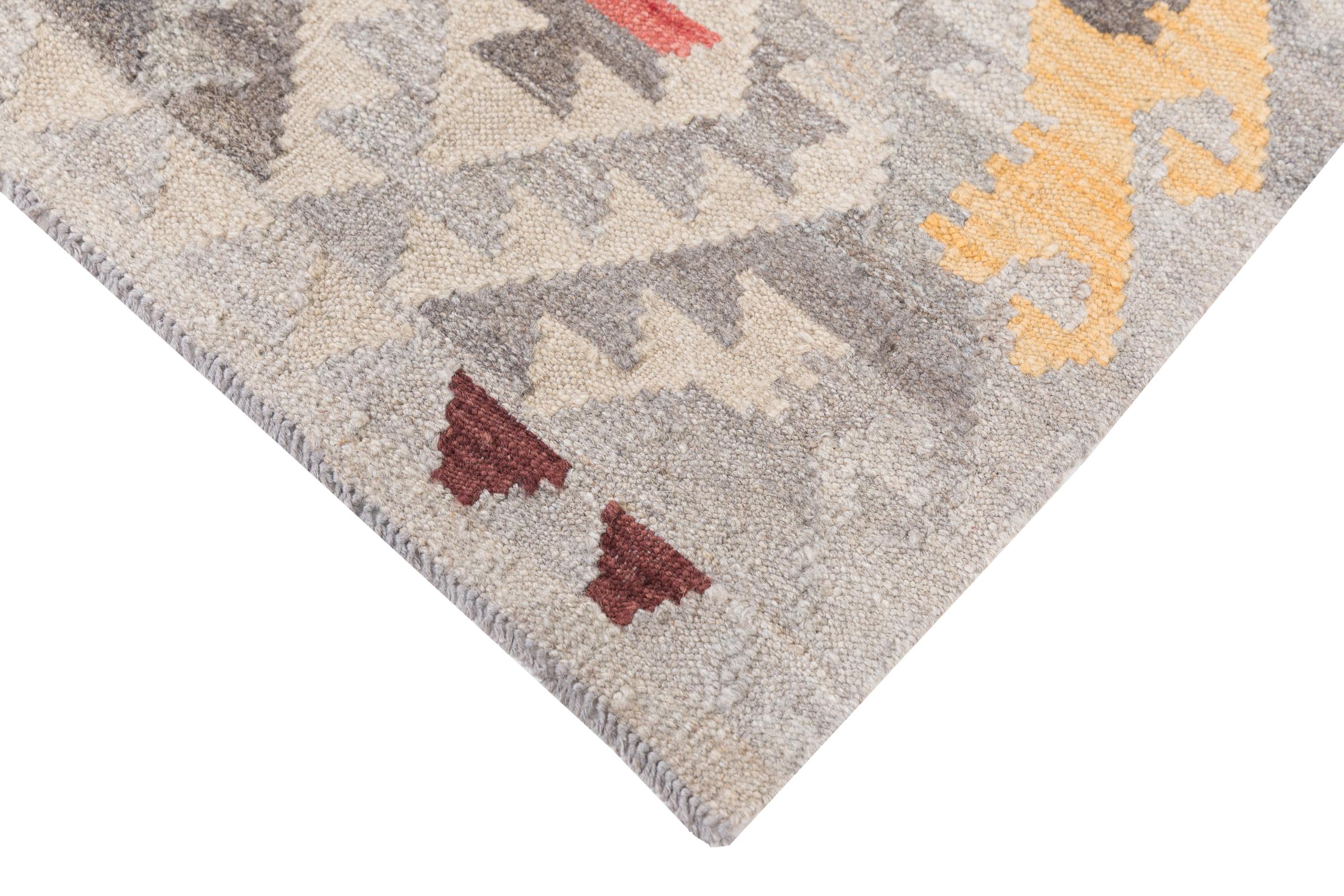 Our Kilim Afghan Heritage collection is in each and every detail exceptional. It combines the most traditional way of crafting a Kilim with contemporary modern design elements. Not only has this carpet been woven by hand, its wool has also been spun by hand like for Kilims centuries ago. The geometric patterns make this carpet a pure enrichment for modern interior concepts. It is going to deeply impress you and your guests. You won't get more value for your money than for this Kilim Heritage.