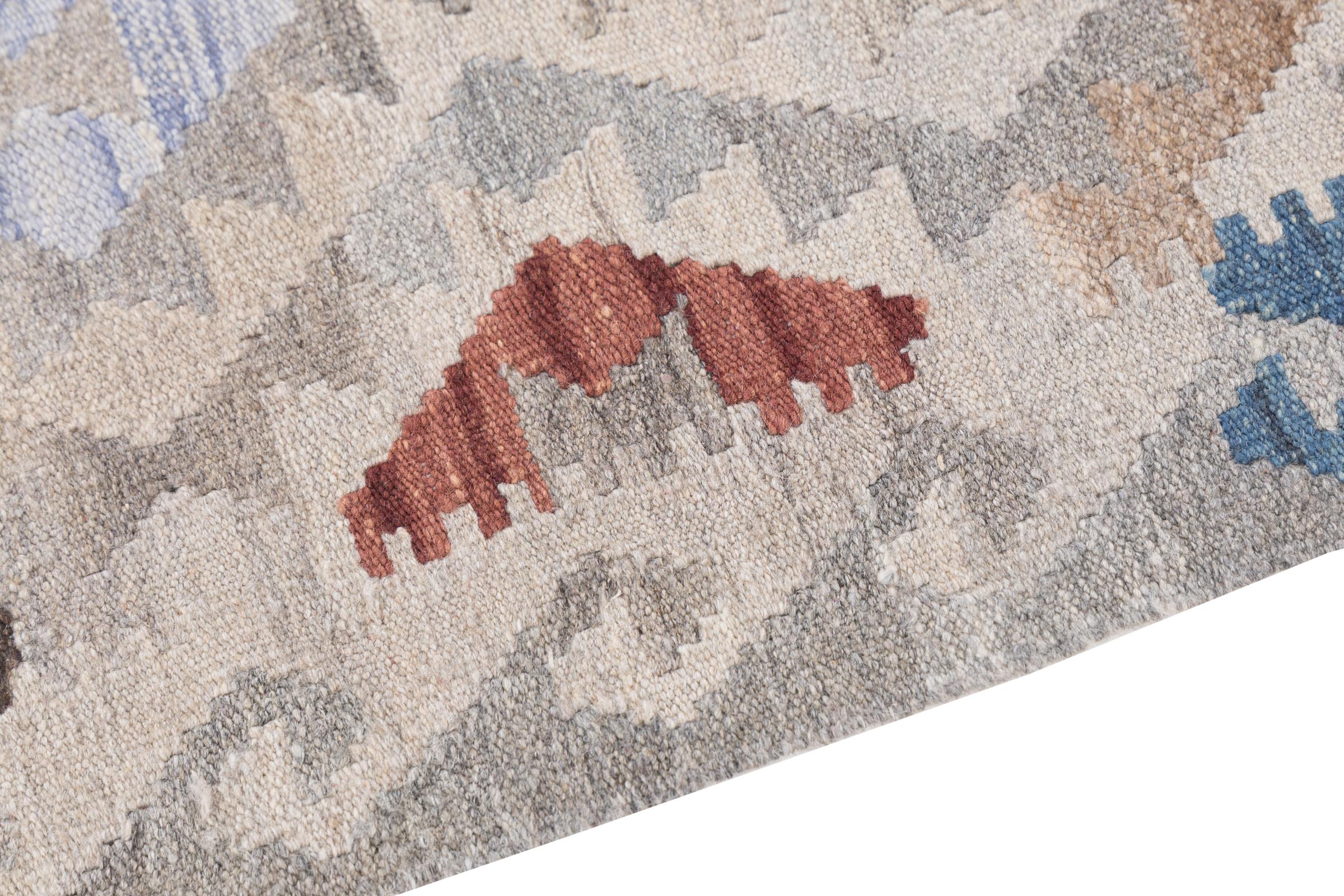 Our Kilim Afghan Heritage collection is in each and every detail exceptional. It combines the most traditional way of crafting a Kilim with contemporary modern design elements. Not only has this carpet been woven by hand, its wool has also been spun by hand like for Kilims centuries ago. The geometric patterns make this carpet a pure enrichment for modern interior concepts. It is going to deeply impress you and your guests. You won't get more value for your money than for this Kilim Heritage.