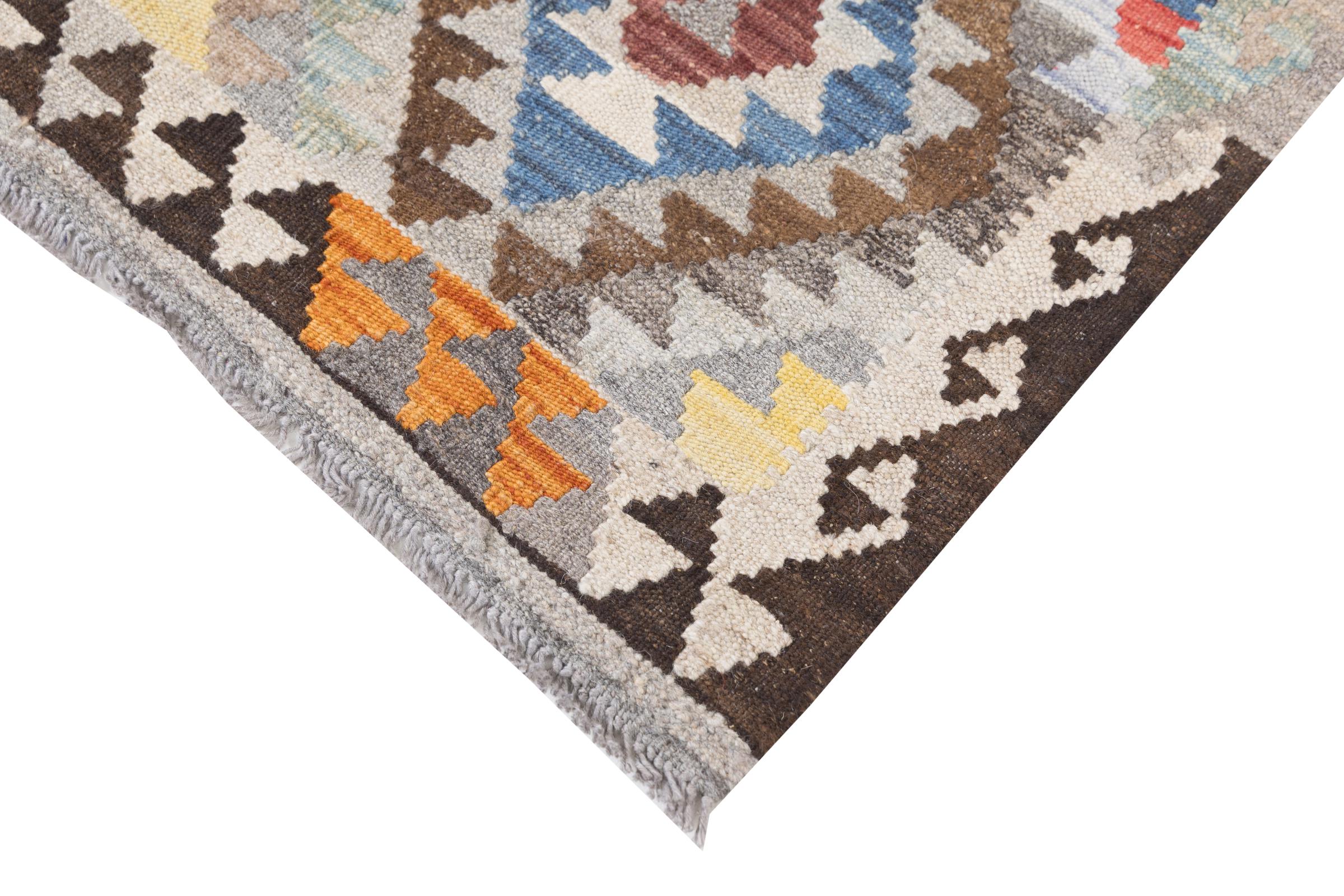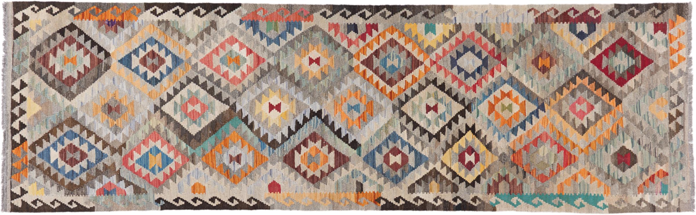 Carpet ID: 2946220050047 Size: 293x86 cm Thickness: ap. 3 mm Manufacturing: Woven by hand Pile: Handspun wool Warp: Sheep wool Origin: Afghanistan Age: New Weight: ap. 4 kg Also know as Kilim, Qilim, Chilim, Afgan, Afghán In stock: Unique - Only 1 in stock
