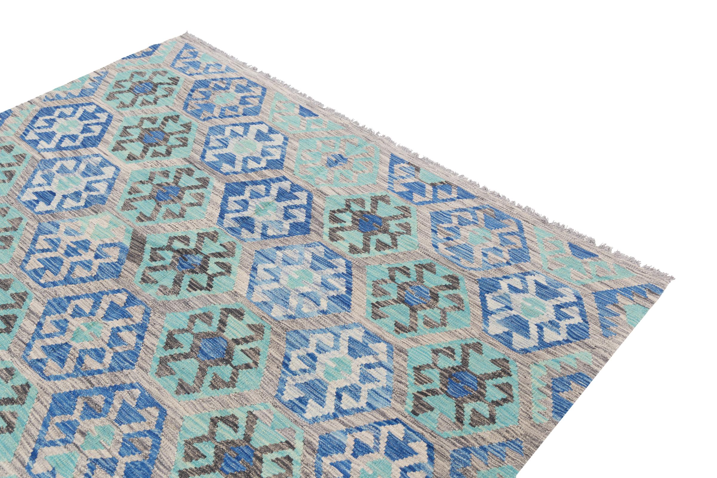 Our Kilim Afghan Heritage collection is in each and every detail exceptional. It combines the most traditional way of crafting a Kilim with contemporary modern design elements. Not only has this carpet been woven by hand, its wool has also been spun by hand like for Kilims centuries ago. The geometric patterns make this carpet a pure enrichment for modern interior concepts. It is going to deeply impress you and your guests. You won't get more value for your money than for this Kilim Heritage.