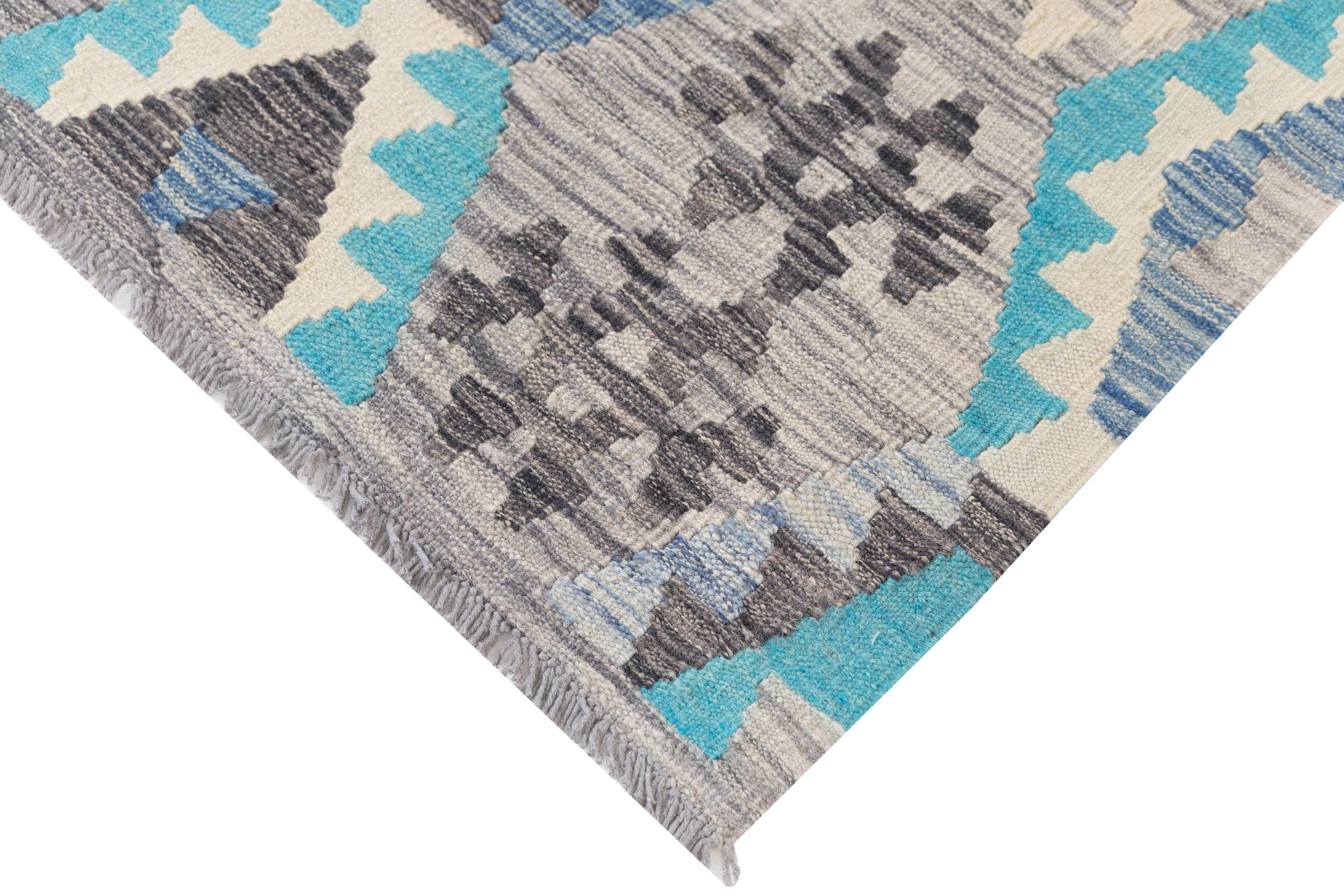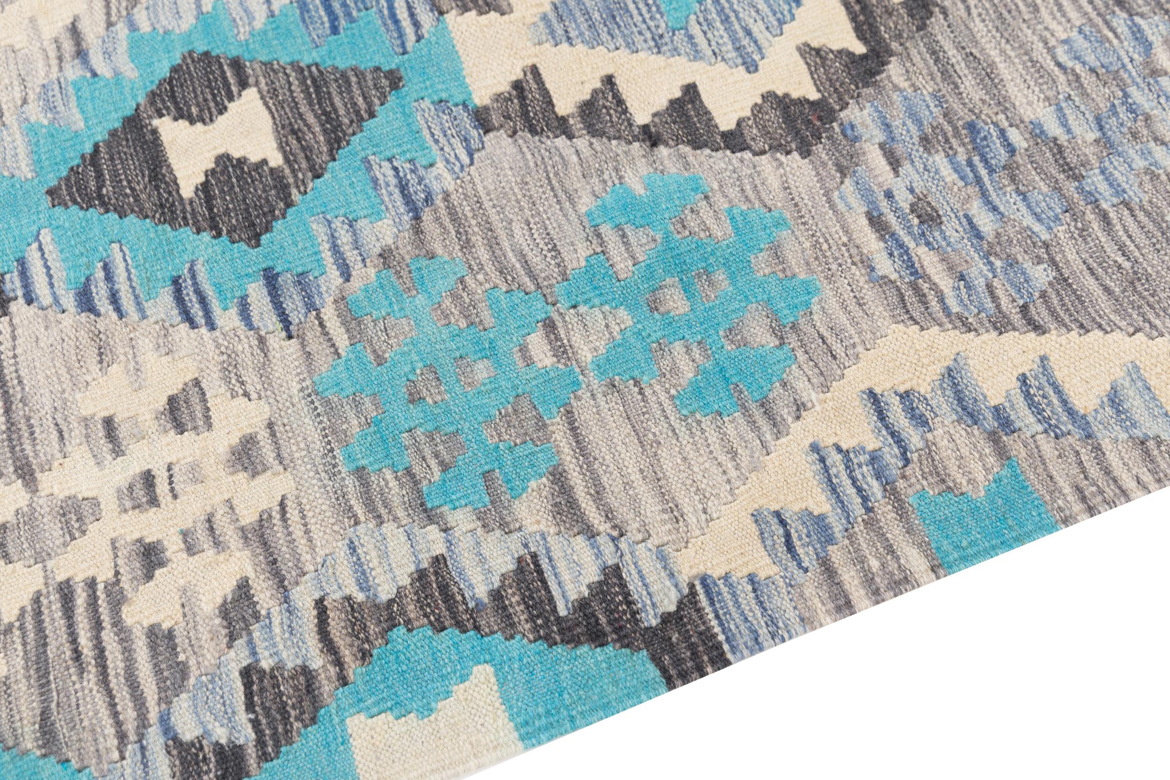 Our Kilim Afghan Heritage collection is in each and every detail exceptional. It combines the most traditional way of crafting a Kilim with contemporary modern design elements. Not only has this carpet been woven by hand, its wool has also been spun by hand like for Kilims centuries ago. The geometric patterns make this carpet a pure enrichment for modern interior concepts. It is going to deeply impress you and your guests. You won't get more value for your money than for this Kilim Heritage.