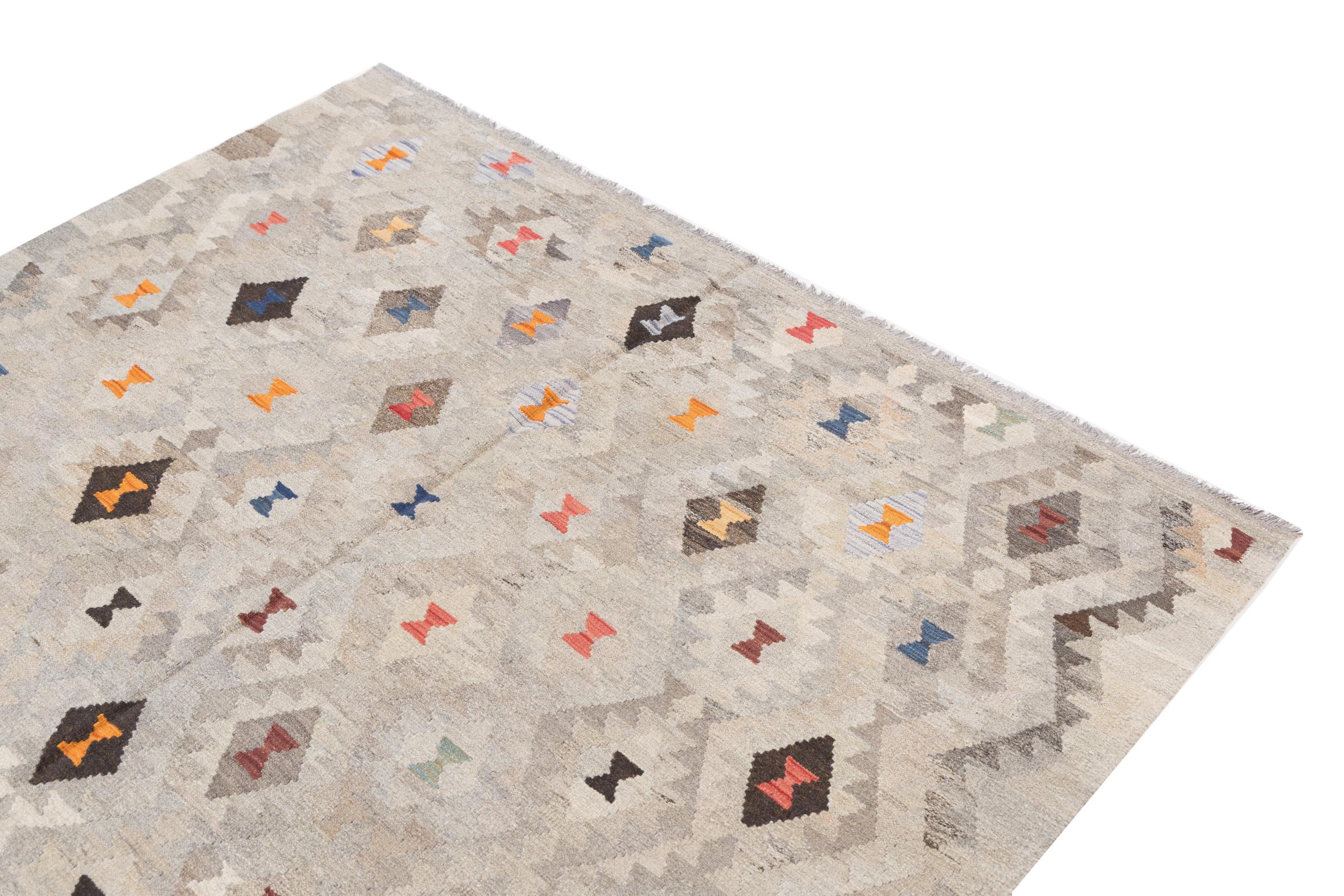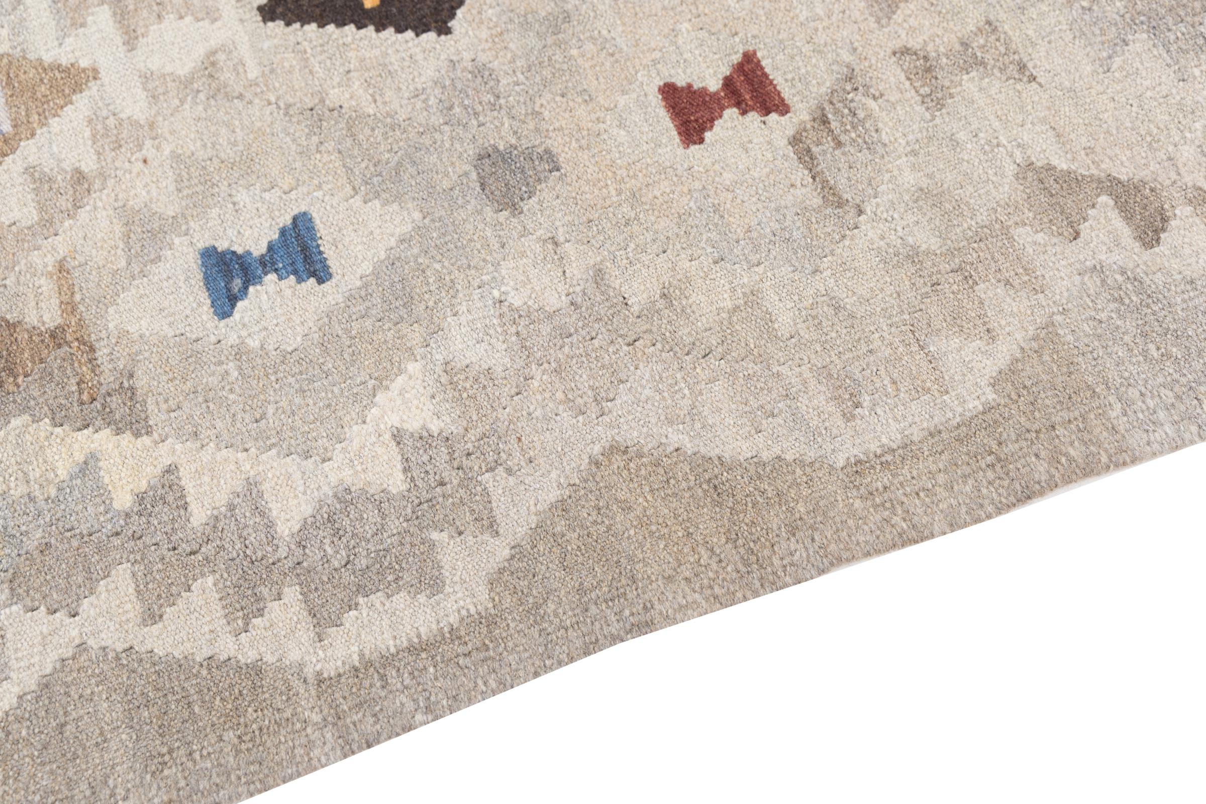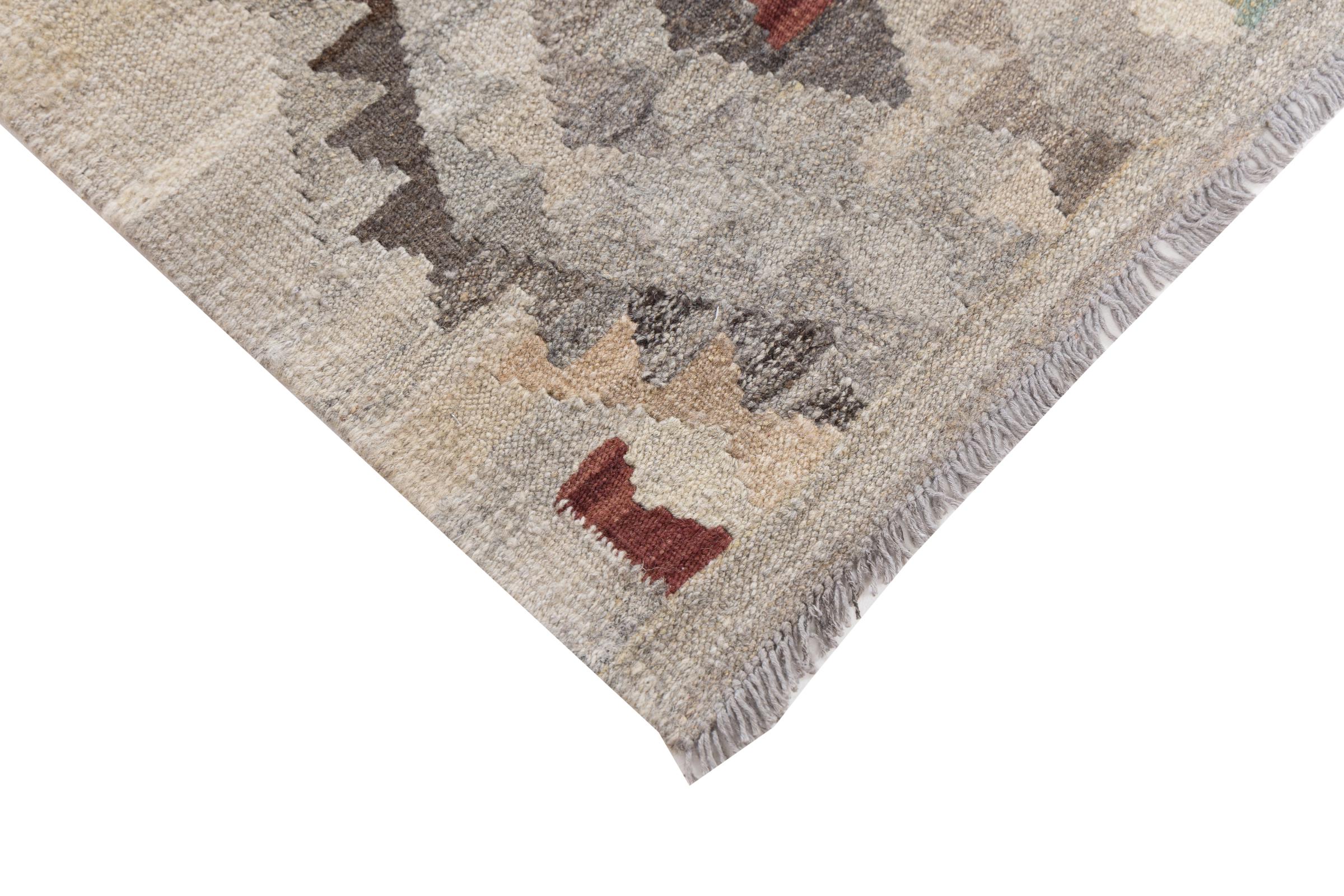 Our Kilim Afghan Heritage collection is in each and every detail exceptional. It combines the most traditional way of crafting a Kilim with contemporary modern design elements. Not only has this carpet been woven by hand, its wool has also been spun by hand like for Kilims centuries ago. The geometric patterns make this carpet a pure enrichment for modern interior concepts. It is going to deeply impress you and your guests. You won't get more value for your money than for this Kilim Heritage.