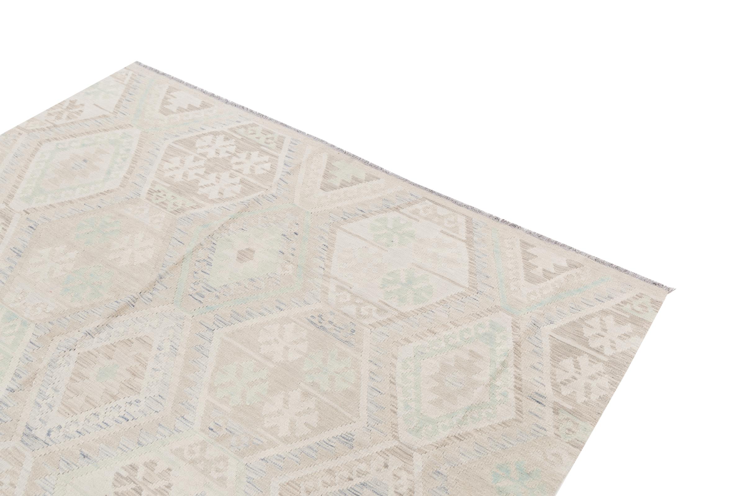 Our Kilim Afghan Heritage collection is in each and every detail exceptional. It combines the most traditional way of crafting a Kilim with contemporary modern design elements. Not only has this carpet been woven by hand, its wool has also been spun by hand like for Kilims centuries ago. The geometric patterns make this carpet a pure enrichment for modern interior concepts. It is going to deeply impress you and your guests. You won't get more value for your money than for this Kilim Heritage.