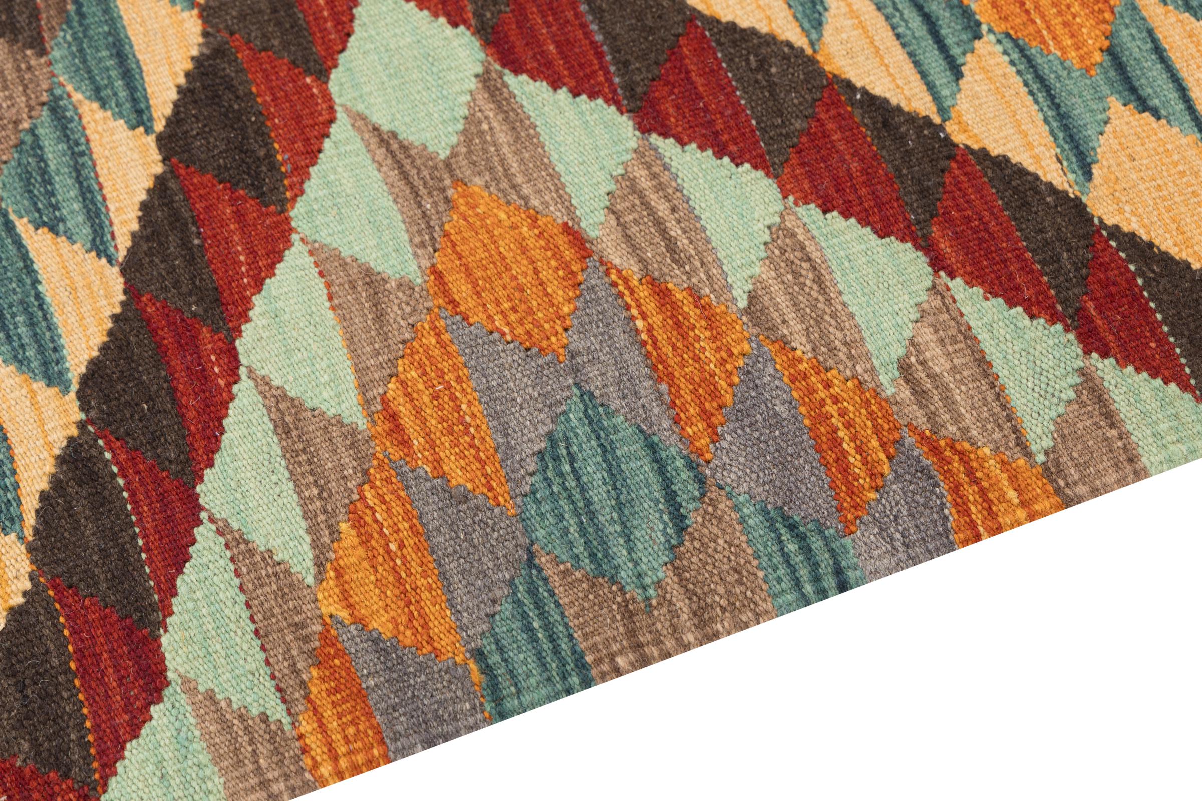 Our Kilim Afghan Heritage collection is in each and every detail exceptional. It combines the most traditional way of crafting a Kilim with contemporary modern design elements. Not only has this carpet been woven by hand, its wool has also been spun by hand like for Kilims centuries ago. The geometric patterns make this carpet a pure enrichment for modern interior concepts. It is going to deeply impress you and your guests. You won't get more value for your money than for this Kilim Heritage.