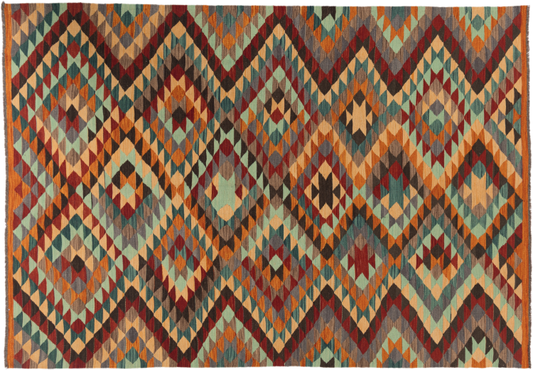 Carpet ID: 2943730049851 Size: 298x207 cm Thickness: ap. 3 mm Manufacturing: Woven by hand Pile: Handspun wool Warp: Sheep wool Origin: Afghanistan Age: New Weight: ap. 9 kg Also know as Kilim, Qilim, Chilim, Afgan, Afghán In stock: Unique - Only 1 in stock