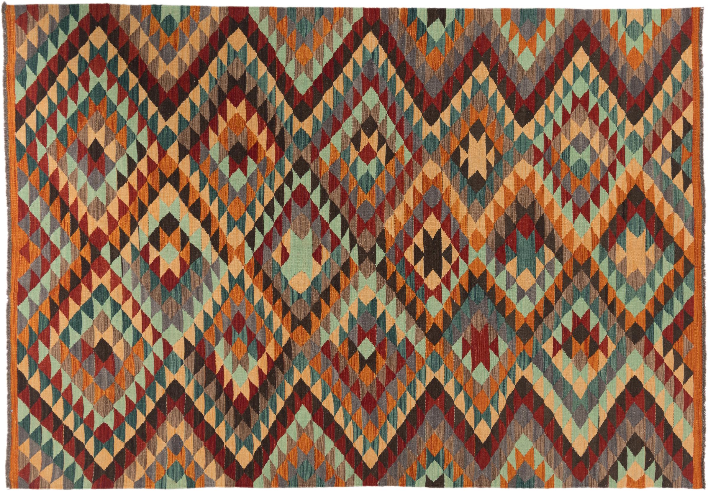 These kilim rugs show a decisive difference to hand-knotted rugs - they are woven by hand. Thus, they do not have a high pile of wool and are often flatter and rougher than knotted wool rugs. Their making is less elaborate and so they are usually much more affordable. As an advantage, kilim rugs are also much lighter and can be laid out from the front and back side. Hand-woven kilims originally come from the former Persia and are now also often made in Afghanistan. They have rather simple, straightforward patterns, which are determined by their weaving technique.