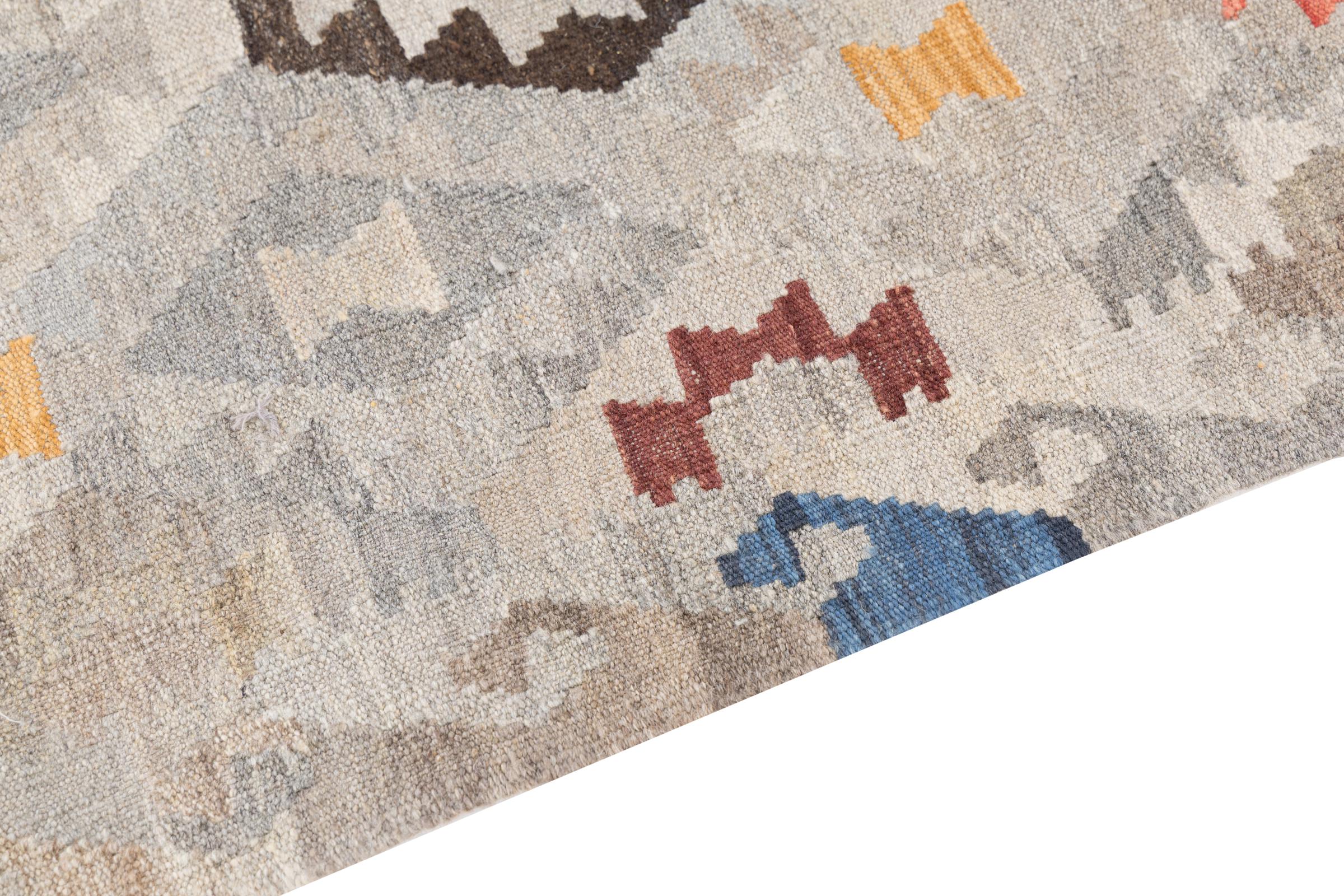 Our Kilim Afghan Heritage collection is in each and every detail exceptional. It combines the most traditional way of crafting a Kilim with contemporary modern design elements. Not only has this carpet been woven by hand, its wool has also been spun by hand like for Kilims centuries ago. The geometric patterns make this carpet a pure enrichment for modern interior concepts. It is going to deeply impress you and your guests. You won't get more value for your money than for this Kilim Heritage.