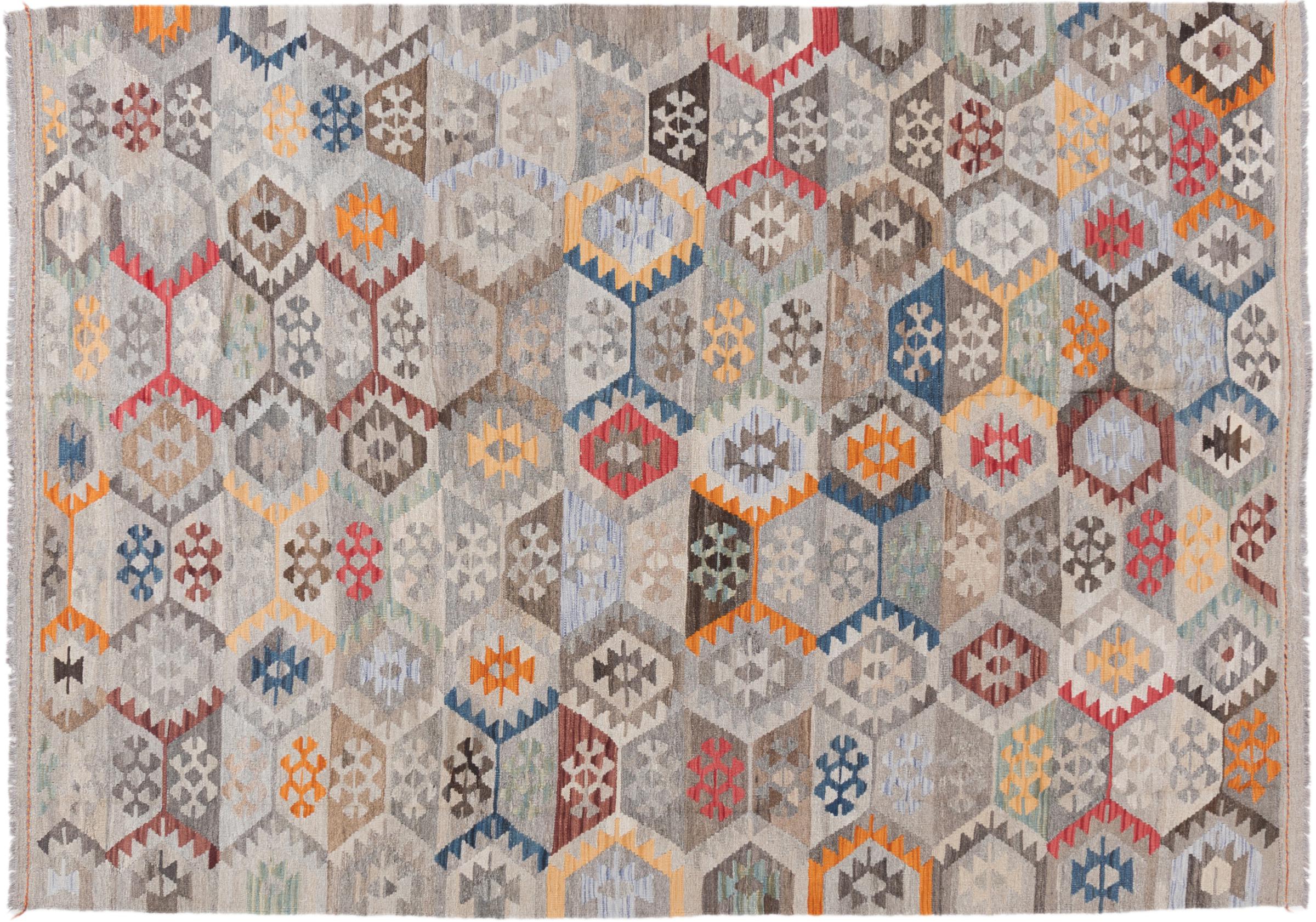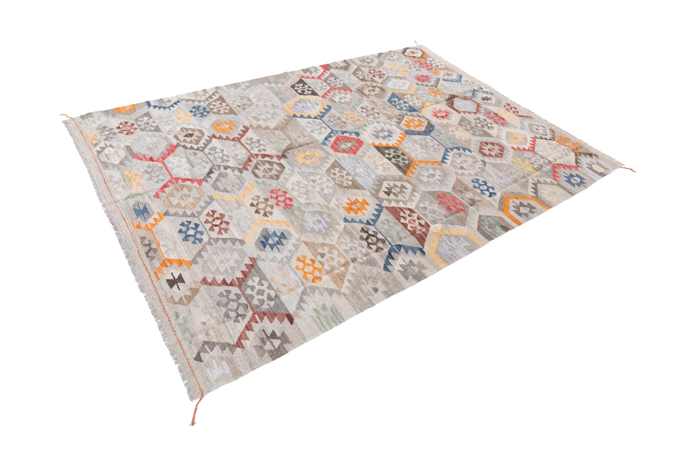 Our Kilim Afghan Heritage collection is in each and every detail exceptional. It combines the most traditional way of crafting a Kilim with contemporary modern design elements. Not only has this carpet been woven by hand, its wool has also been spun by hand like for Kilims centuries ago. The geometric patterns make this carpet a pure enrichment for modern interior concepts. It is going to deeply impress you and your guests. You won't get more value for your money than for this Kilim Heritage.