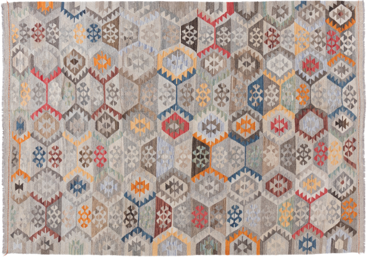 Carpet ID: 2944530048865 Size: 300x213 cm Thickness: ap. 3 mm Manufacturing: Woven by hand Pile: Handspun wool Warp: Sheep wool Origin: Afghanistan Age: New Weight: ap. 10 kg Also know as Kilim, Qilim, Chilim, Afgan, Afghán In stock: Unique - Only 1 in stock