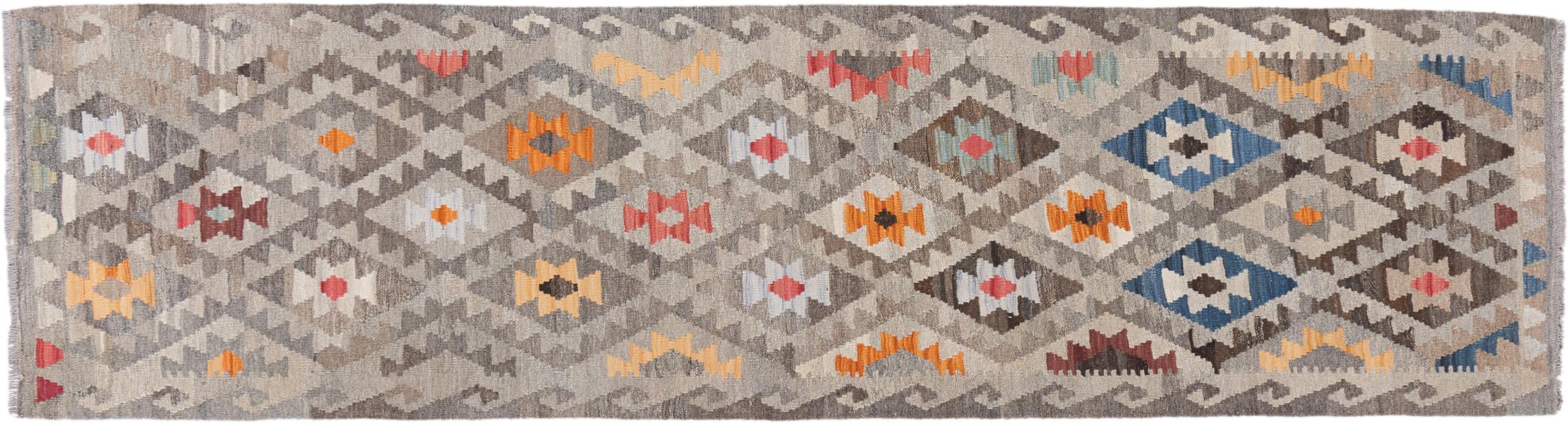 Carpet ID: 2949650050046 Size: 300x82 cm Thickness: ap. 3 mm Manufacturing: Woven by hand Pile: Handspun wool Warp: Sheep wool Origin: Afghanistan Age: New Weight: ap. 4 kg Also know as Kilim, Qilim, Chilim, Afgan, Afghán In stock: Unique - Only 1 in stock