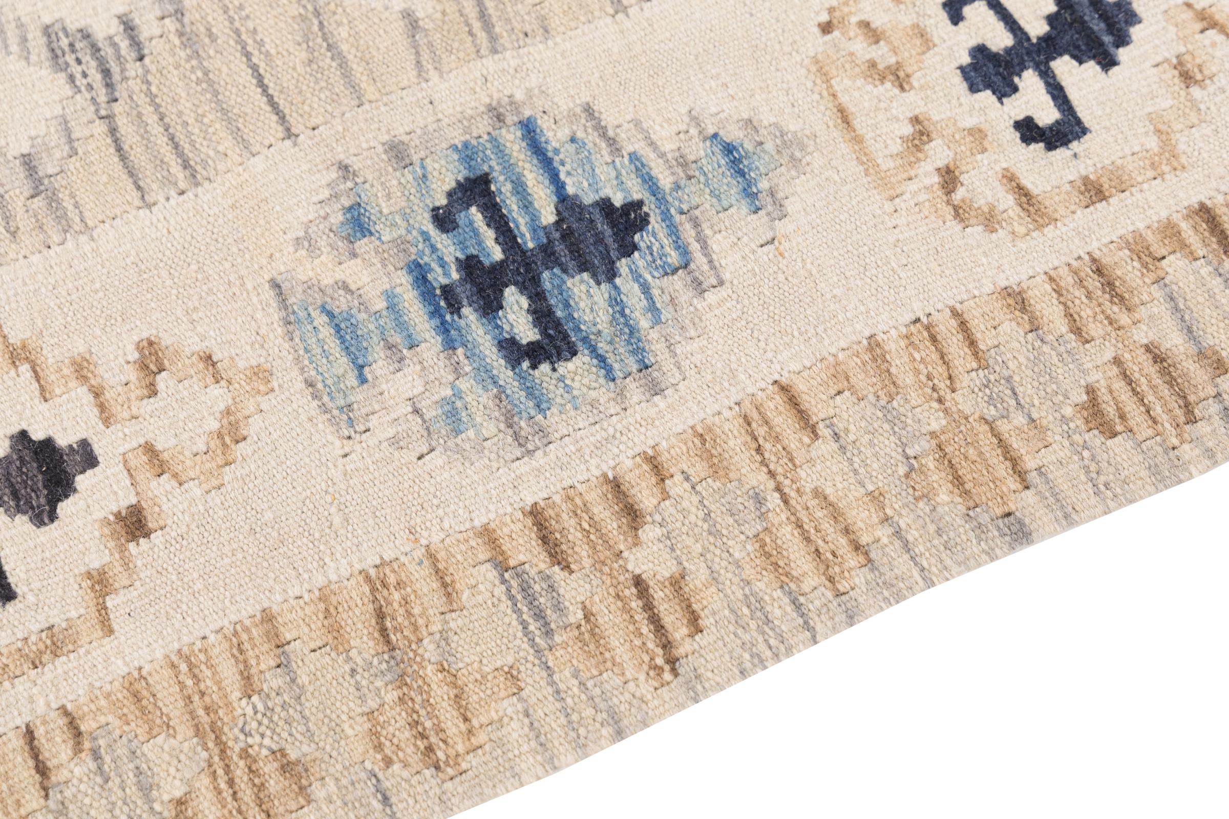 Our Kilim Afghan Heritage collection is in each and every detail exceptional. It combines the most traditional way of crafting a Kilim with contemporary modern design elements. Not only has this carpet been woven by hand, its wool has also been spun by hand like for Kilims centuries ago. The geometric patterns make this carpet a pure enrichment for modern interior concepts. It is going to deeply impress you and your guests. You won't get more value for your money than for this Kilim Heritage.