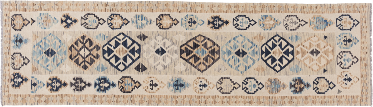 Carpet ID: 2945640045955 Size: 300x85 cm Thickness: ap. 3 mm Manufacturing: Woven by hand Pile: Handspun wool Warp: Sheep wool Origin: Afghanistan Age: New Weight: ap. 4 kg Also know as Kilim, Qilim, Chilim, Afgan, Afghán In stock: Unique - Only 1 in stock