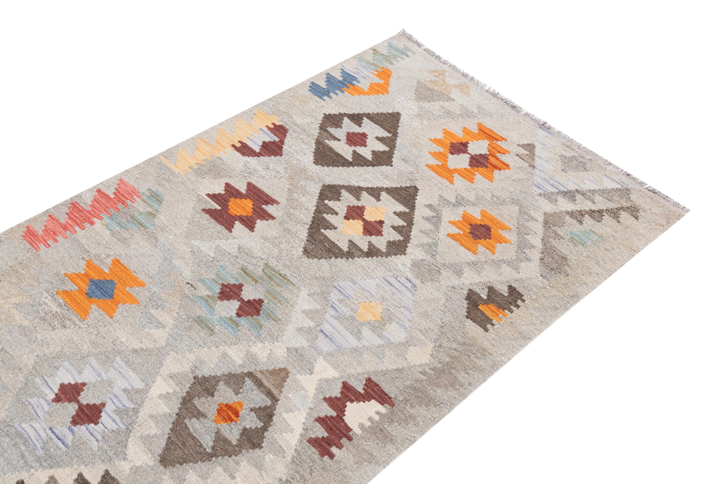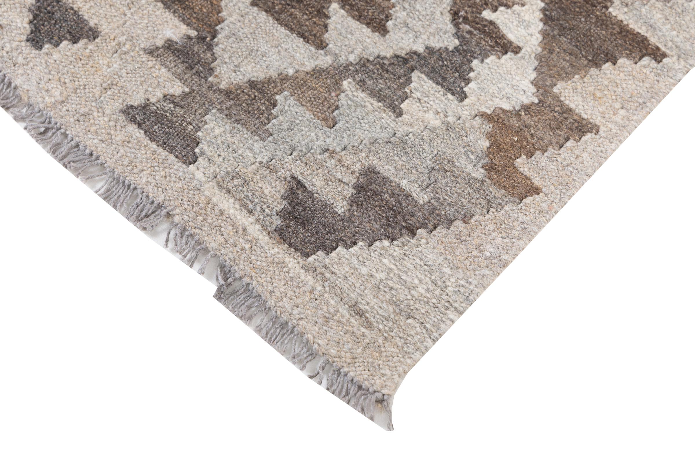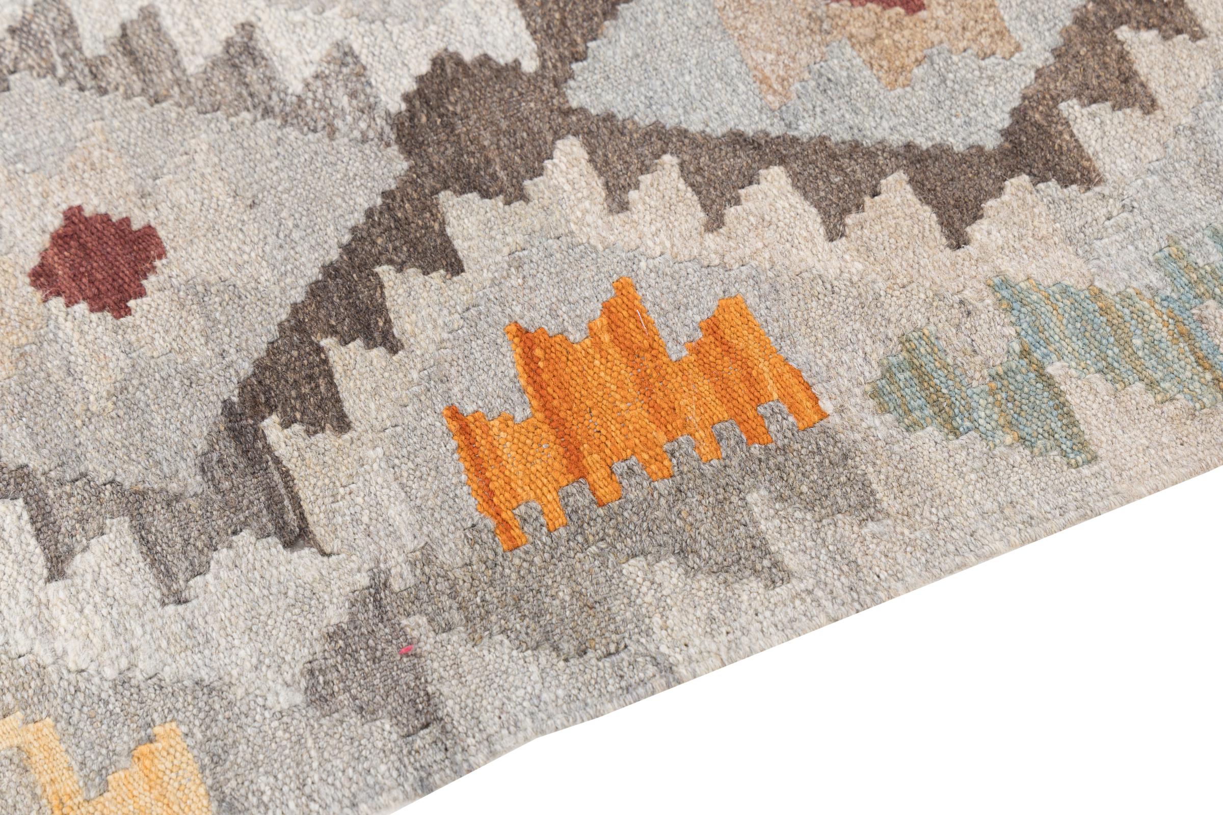 Our Kilim Afghan Heritage collection is in each and every detail exceptional. It combines the most traditional way of crafting a Kilim with contemporary modern design elements. Not only has this carpet been woven by hand, its wool has also been spun by hand like for Kilims centuries ago. The geometric patterns make this carpet a pure enrichment for modern interior concepts. It is going to deeply impress you and your guests. You won't get more value for your money than for this Kilim Heritage.