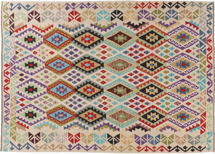 These kilim rugs show a decisive difference to hand-knotted rugs - they are woven by hand. Thus, they do not have a high pile of wool and are often flatter and rougher than knotted wool rugs. Their making is less elaborate and so they are usually much more affordable. As an advantage, kilim rugs are also much lighter and can be laid out from the front and back side. Hand-woven kilims originally come from the former Persia and are now also often made in Afghanistan. They have rather simple, straightforward patterns, which are determined by their weaving technique.