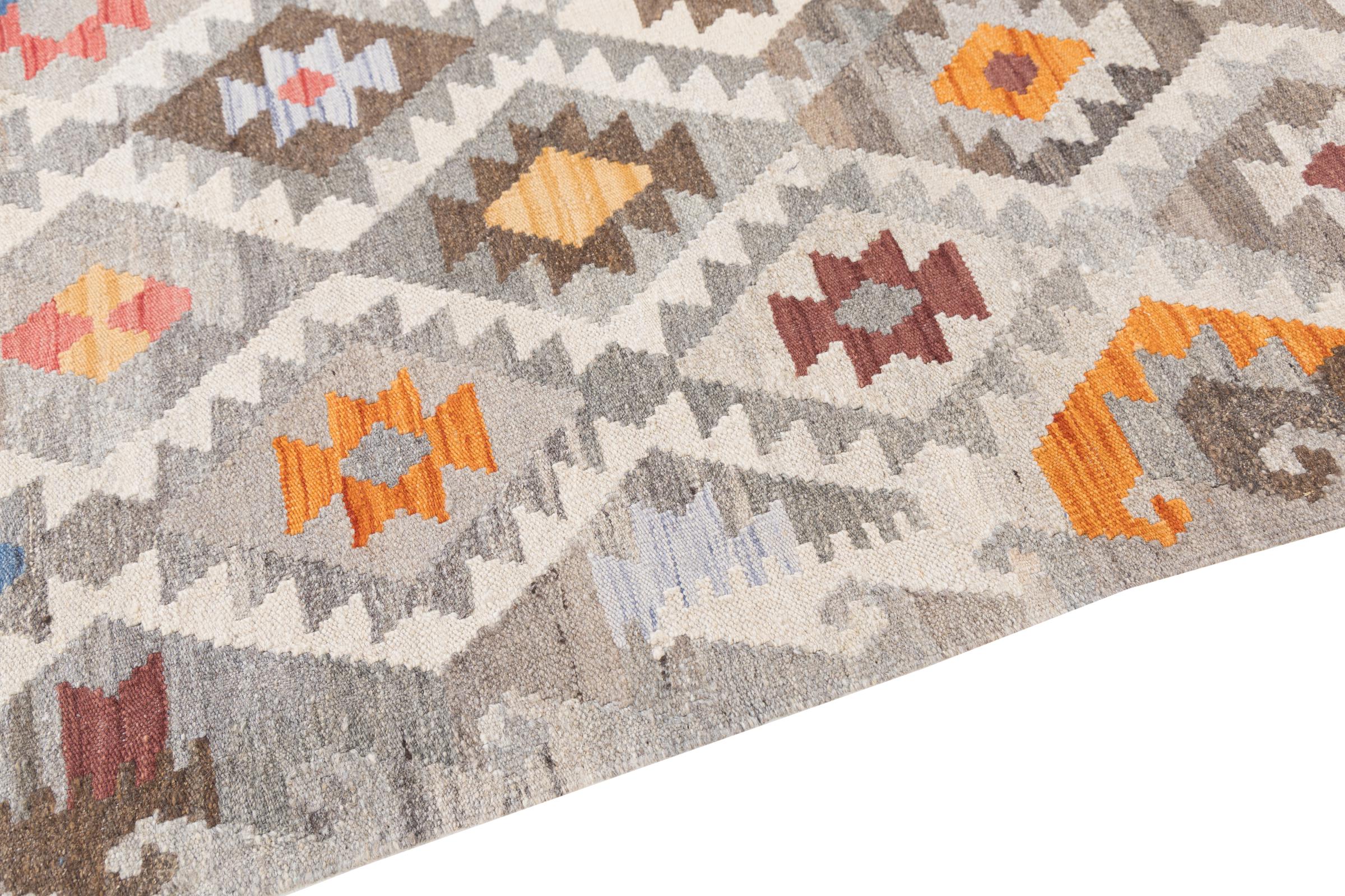 Our Kilim Afghan Heritage collection is in each and every detail exceptional. It combines the most traditional way of crafting a Kilim with contemporary modern design elements. Not only has this carpet been woven by hand, its wool has also been spun by hand like for Kilims centuries ago. The geometric patterns make this carpet a pure enrichment for modern interior concepts. It is going to deeply impress you and your guests. You won't get more value for your money than for this Kilim Heritage.