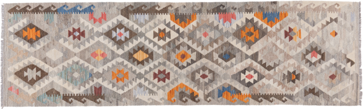 Carpet ID: 2943710048878 Size: 304x90 cm Thickness: ap. 3 mm Manufacturing: Woven by hand Pile: Handspun wool Warp: Sheep wool Origin: Afghanistan Age: New Weight: ap. 4 kg Also know as Kilim, Qilim, Chilim, Afgan, Afghán In stock: Unique - Only 1 in stock