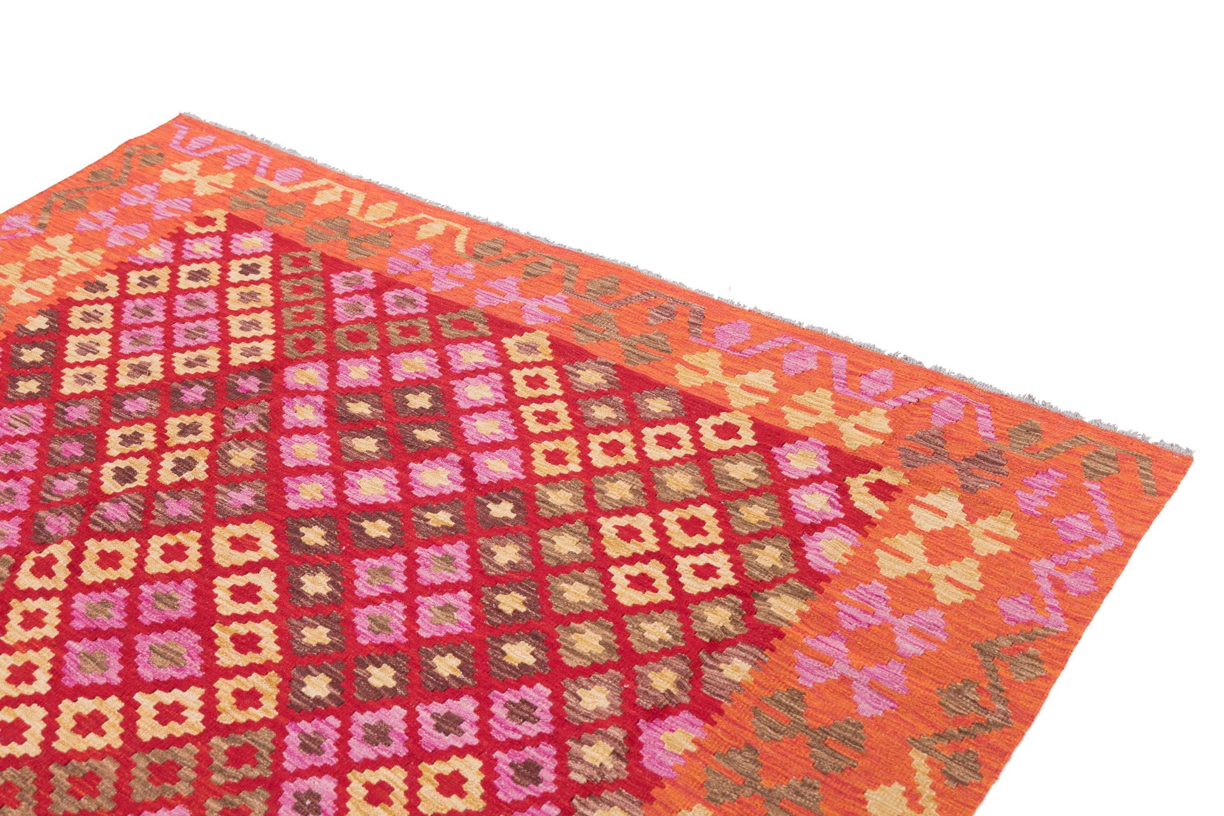 Our Kilim Afghan Heritage collection is in each and every detail exceptional. It combines the most traditional way of crafting a Kilim with contemporary modern design elements. Not only has this carpet been woven by hand, its wool has also been spun by hand like for Kilims centuries ago. The geometric patterns make this carpet a pure enrichment for modern interior concepts. It is going to deeply impress you and your guests. You won't get more value for your money than for this Kilim Heritage.