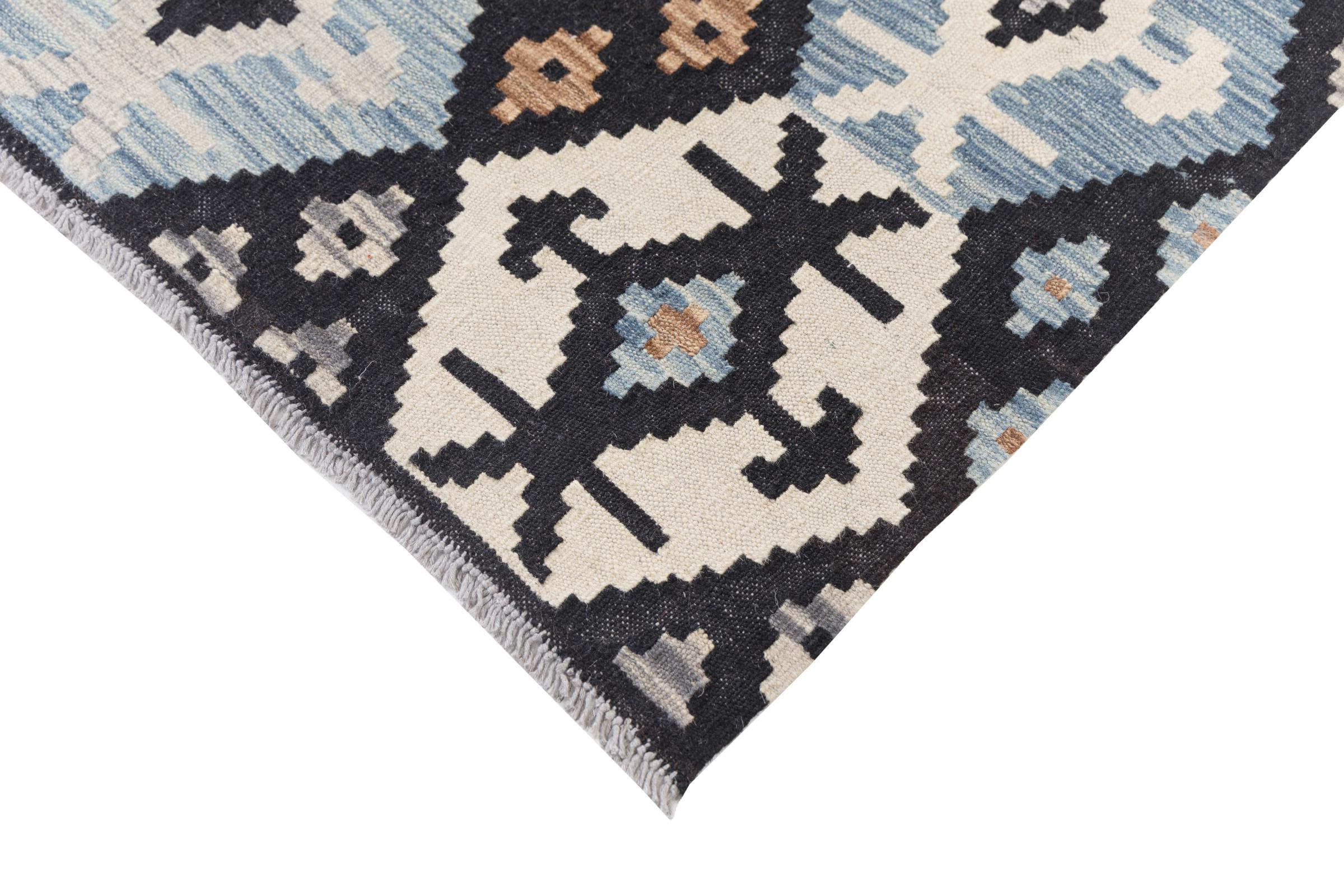 Our Kilim Afghan Heritage collection is in each and every detail exceptional. It combines the most traditional way of crafting a Kilim with contemporary modern design elements. Not only has this carpet been woven by hand, its wool has also been spun by hand like for Kilims centuries ago. The geometric patterns make this carpet a pure enrichment for modern interior concepts. It is going to deeply impress you and your guests. You won't get more value for your money than for this Kilim Heritage.