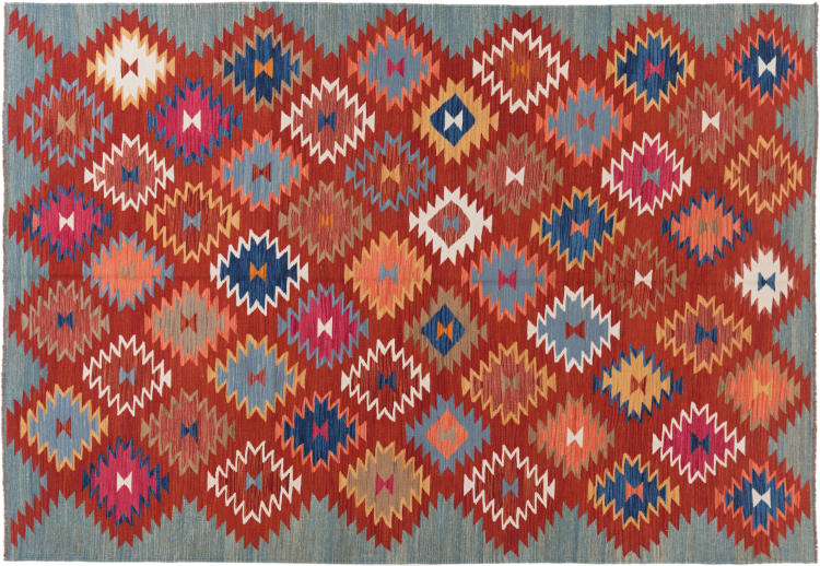 These kilim rugs show a decisive difference to hand-knotted rugs - they are woven by hand. Thus, they do not have a high pile of wool and are often flatter and rougher than knotted wool rugs. Their making is less elaborate and so they are usually much more affordable. As an advantage, kilim rugs are also much lighter and can be laid out from the front and back side. Hand-woven kilims originally come from the former Persia and are now also often made in Afghanistan. They have rather simple, straightforward patterns, which are determined by their weaving technique.