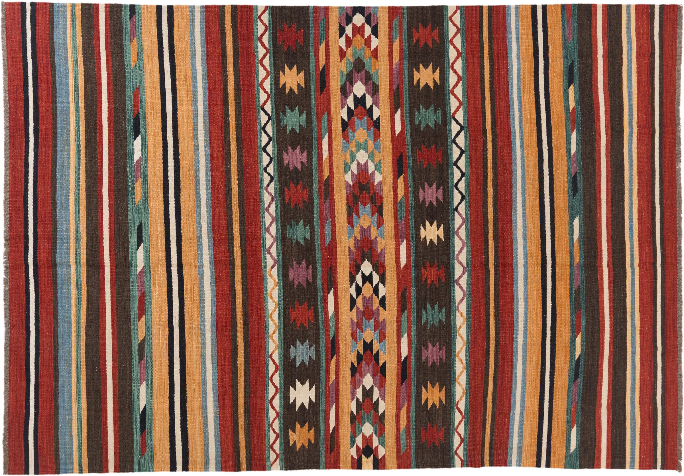 These kilim rugs show a decisive difference to hand-knotted rugs - they are woven by hand. Thus, they do not have a high pile of wool and are often flatter and rougher than knotted wool rugs. Their making is less elaborate and so they are usually much more affordable. As an advantage, kilim rugs are also much lighter and can be laid out from the front and back side. Hand-woven kilims originally come from the former Persia and are now also often made in Afghanistan. They have rather simple, straightforward patterns, which are determined by their weaving technique.