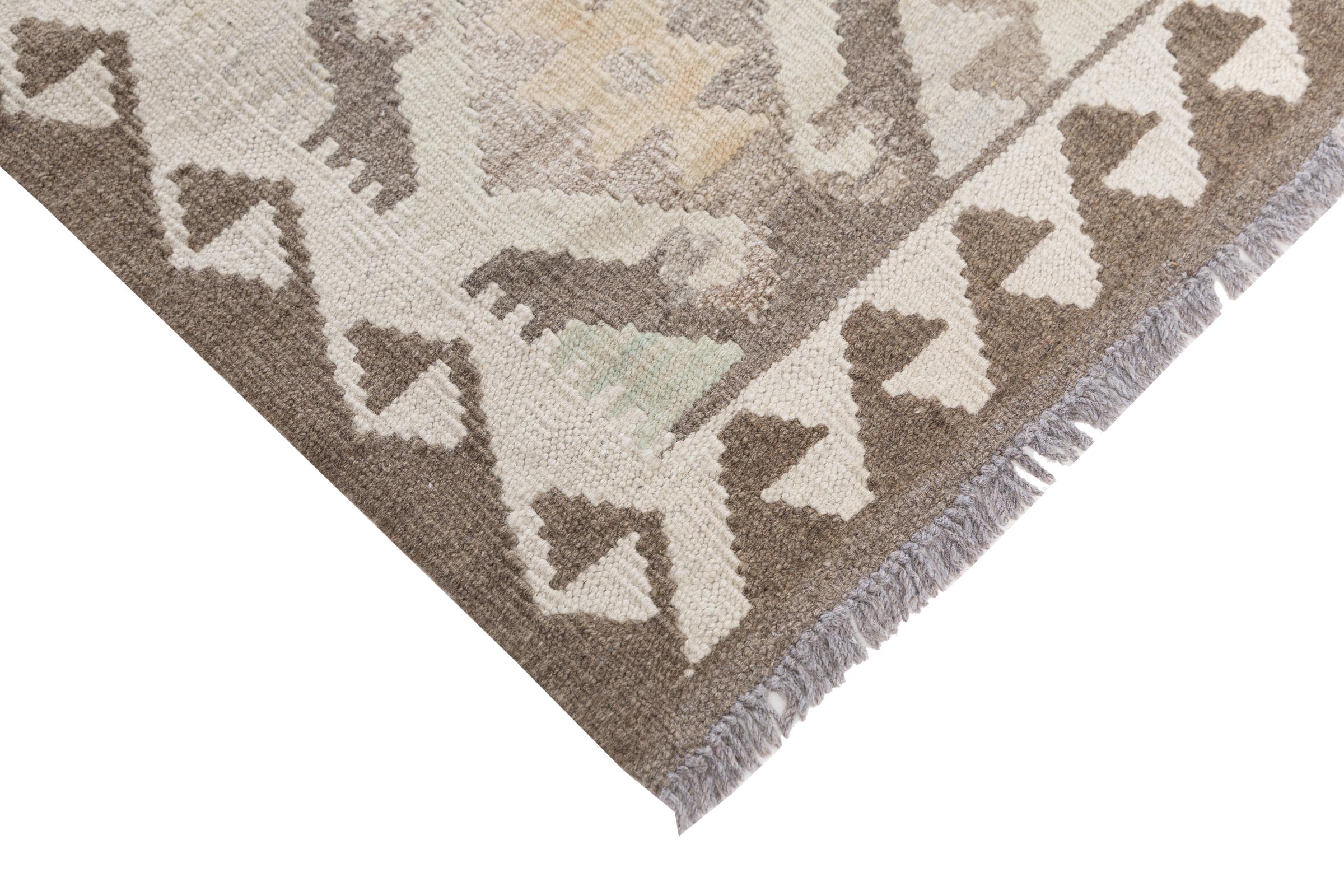 Our Kilim Afghan Heritage collection is in each and every detail exceptional. It combines the most traditional way of crafting a Kilim with contemporary modern design elements. Not only has this carpet been woven by hand, its wool has also been spun by hand like for Kilims centuries ago. The geometric patterns make this carpet a pure enrichment for modern interior concepts. It is going to deeply impress you and your guests. You won't get more value for your money than for this Kilim Heritage.
