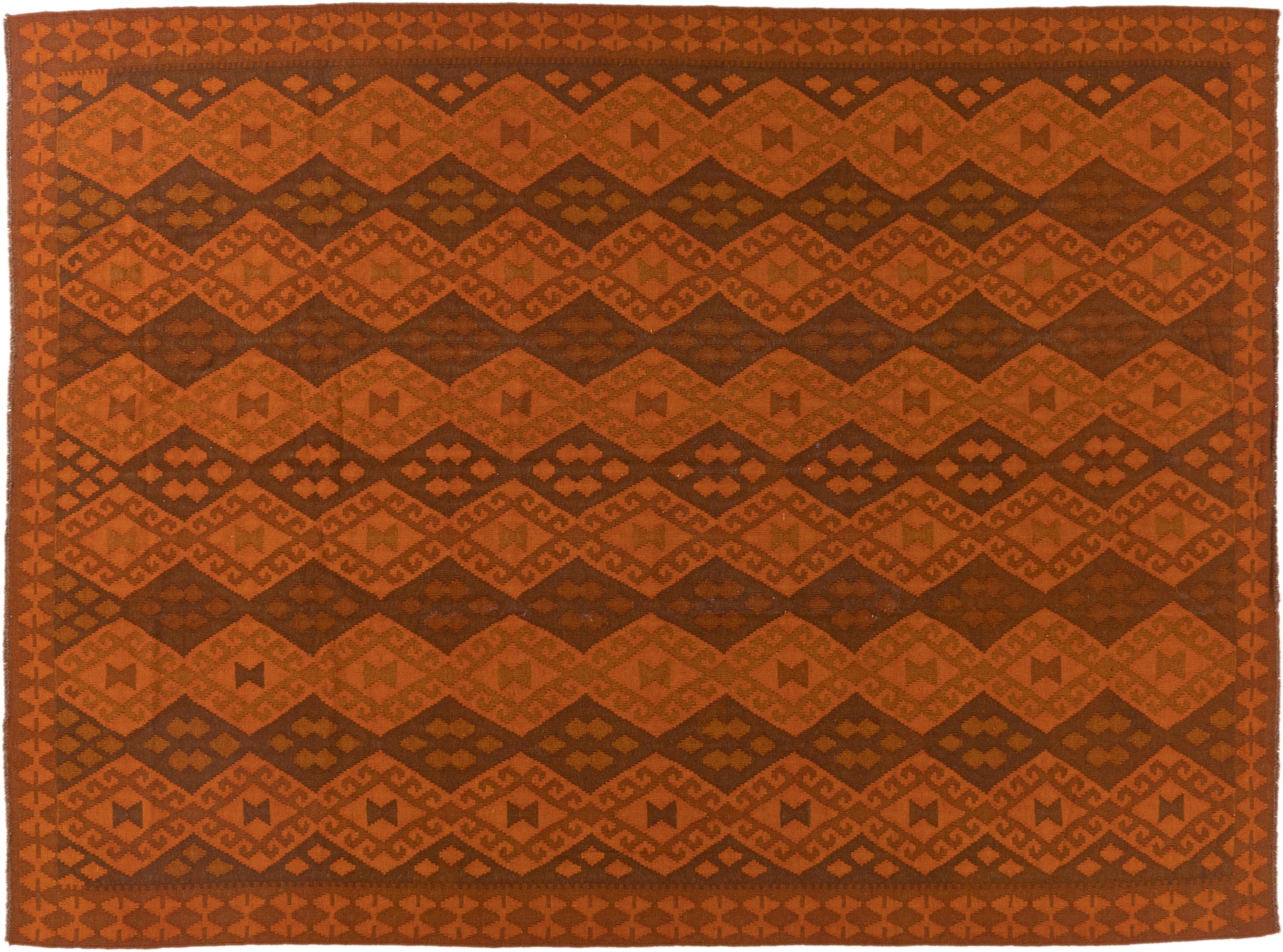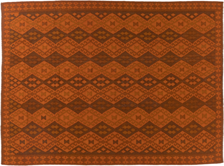 This rug was made as a flat weave by hand on a loom. Flatweave is the term used to describe rugs that have no pile. As the name promises, these rugs are woven and not knotted. This results in a flat rug with a structured surface. Flatweaves are not as soft and usually thinner than knotted rugs. At the same time they are much less complex to manufacture and can usually be laid out from both sides (front and back). Their patterns are usually geometric, which is determined by the fabric.