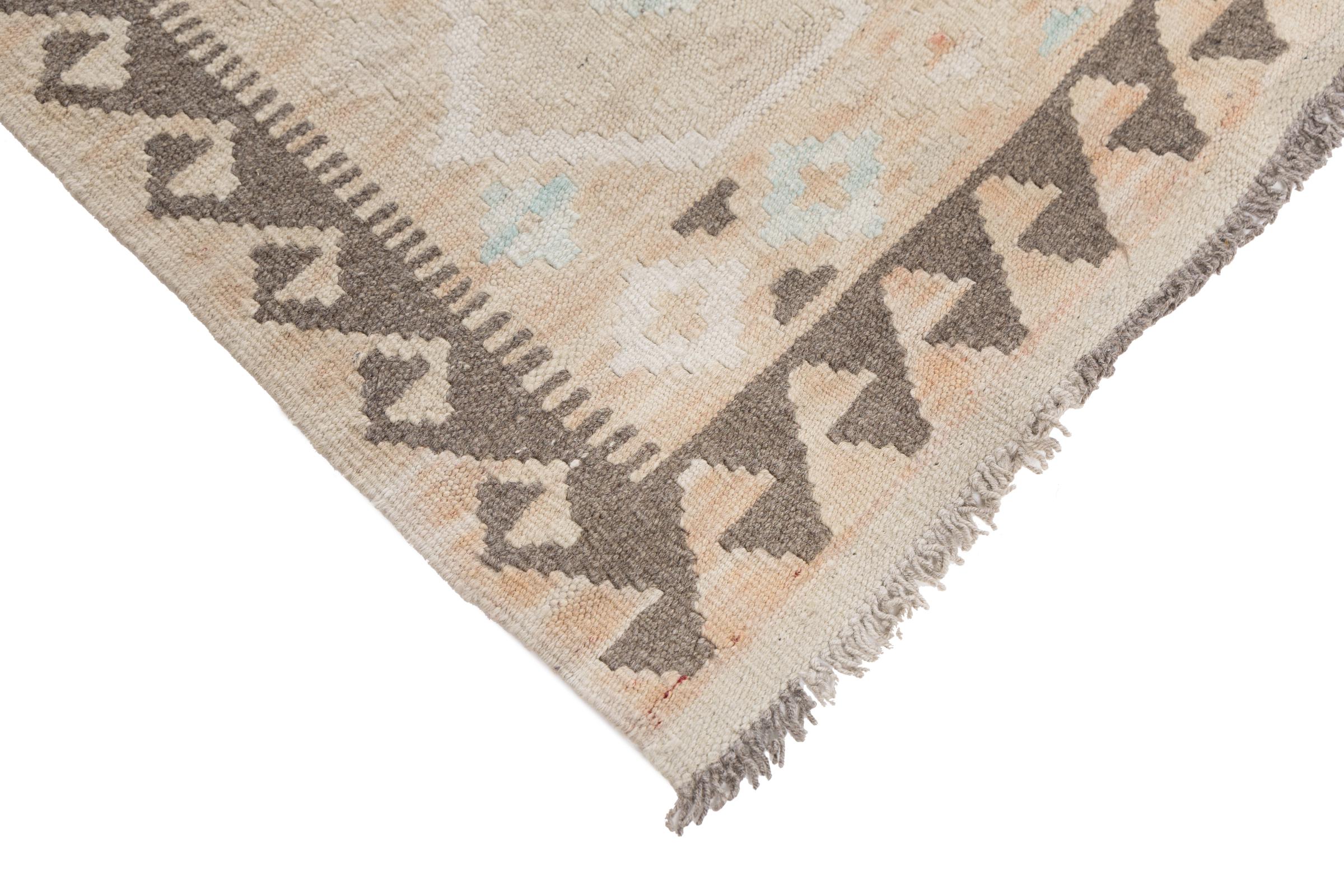 Our Kilim Afghan Heritage collection is in each and every detail exceptional. It combines the most traditional way of crafting a Kilim with contemporary modern design elements. Not only has this carpet been woven by hand, its wool has also been spun by hand like for Kilims centuries ago. The geometric patterns make this carpet a pure enrichment for modern interior concepts. It is going to deeply impress you and your guests. You won't get more value for your money than for this Kilim Heritage.