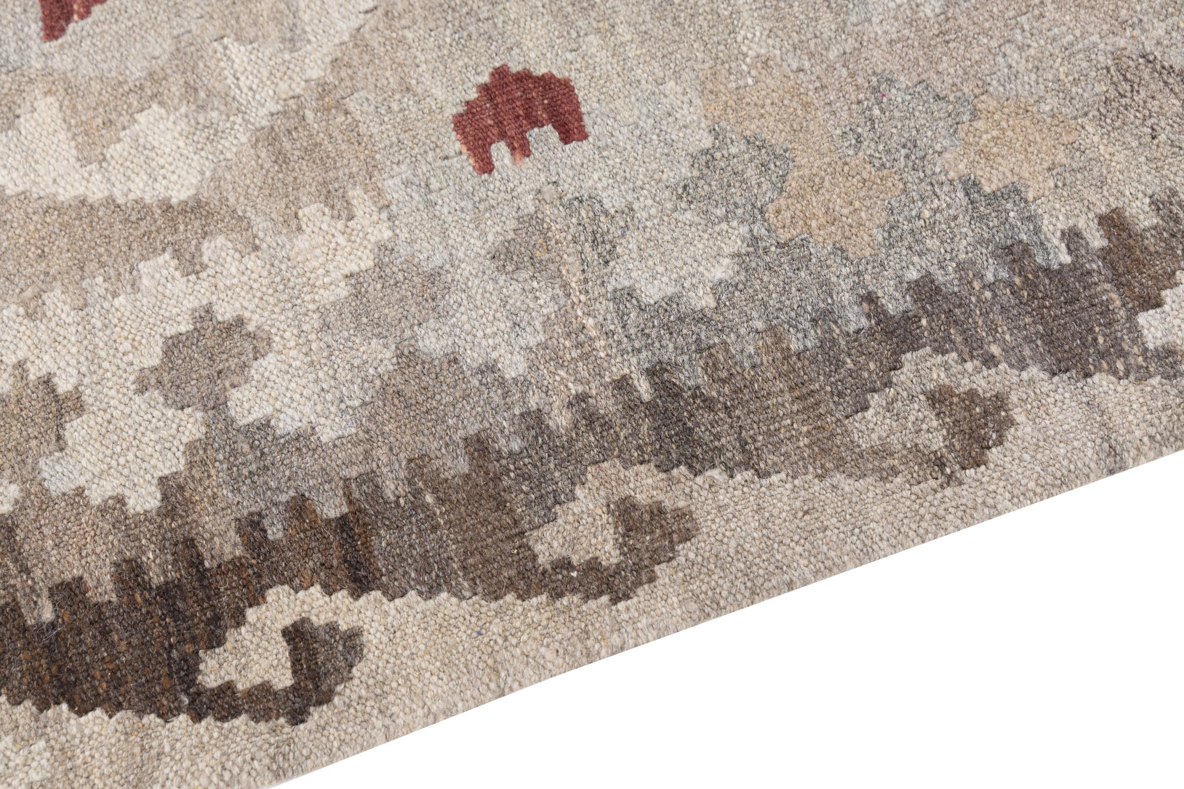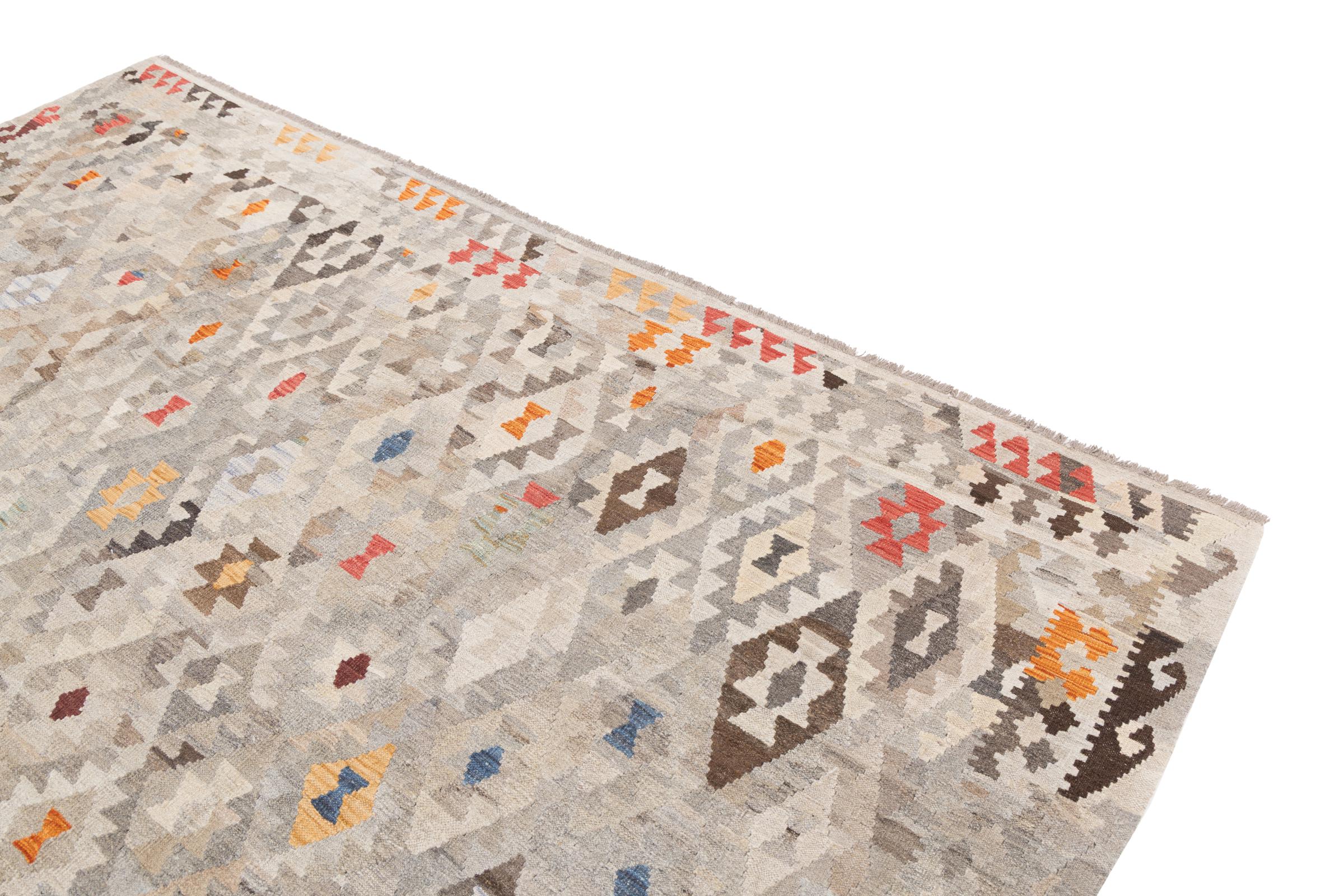 Our Kilim Afghan Heritage collection is in each and every detail exceptional. It combines the most traditional way of crafting a Kilim with contemporary modern design elements. Not only has this carpet been woven by hand, its wool has also been spun by hand like for Kilims centuries ago. The geometric patterns make this carpet a pure enrichment for modern interior concepts. It is going to deeply impress you and your guests. You won't get more value for your money than for this Kilim Heritage.