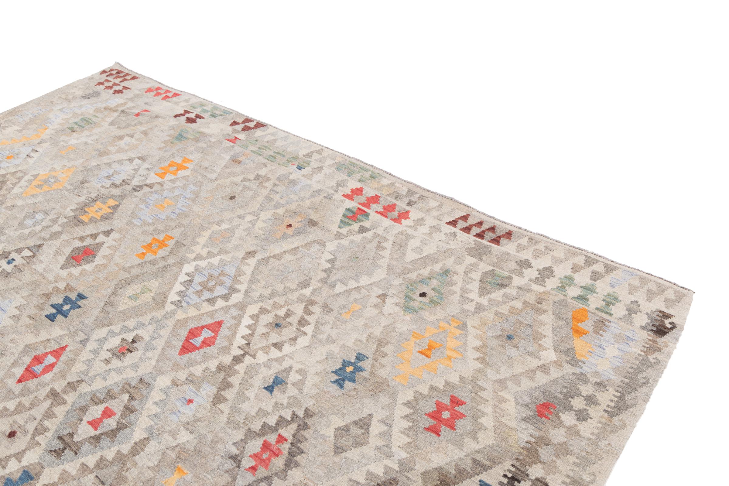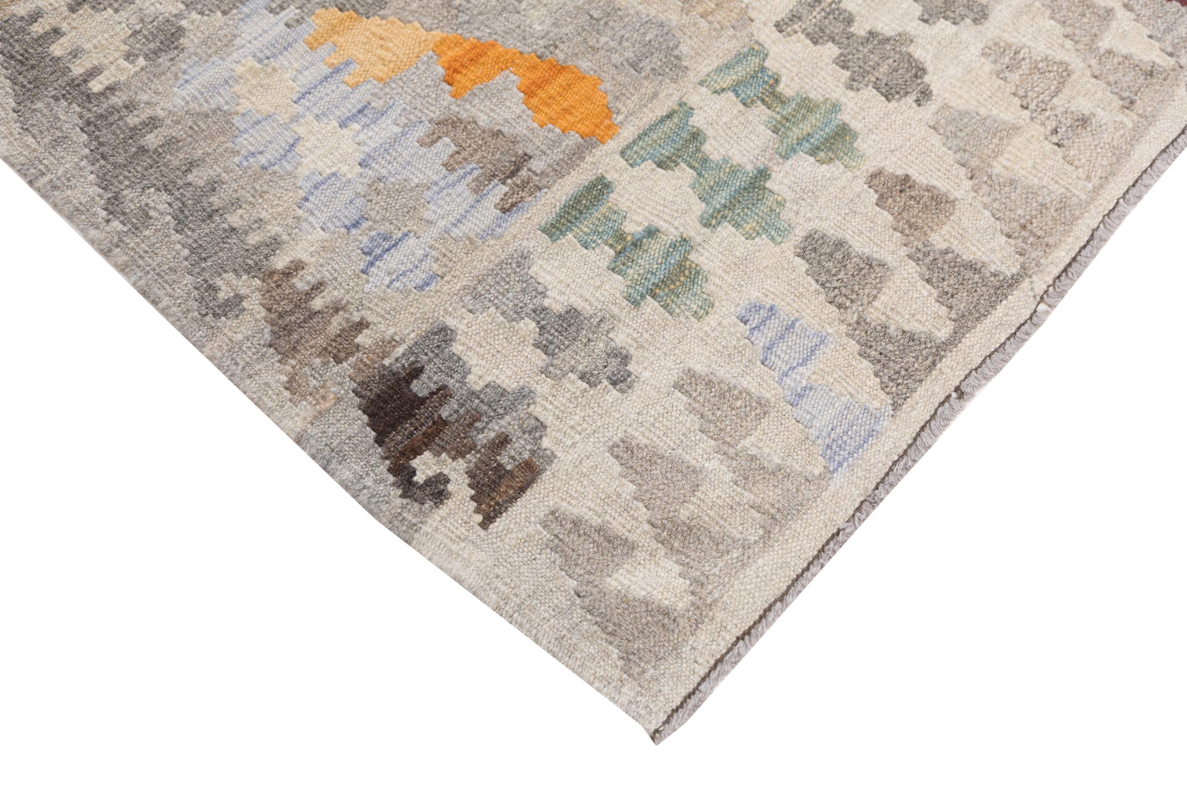 Our Kilim Afghan Heritage collection is in each and every detail exceptional. It combines the most traditional way of crafting a Kilim with contemporary modern design elements. Not only has this carpet been woven by hand, its wool has also been spun by hand like for Kilims centuries ago. The geometric patterns make this carpet a pure enrichment for modern interior concepts. It is going to deeply impress you and your guests. You won't get more value for your money than for this Kilim Heritage.