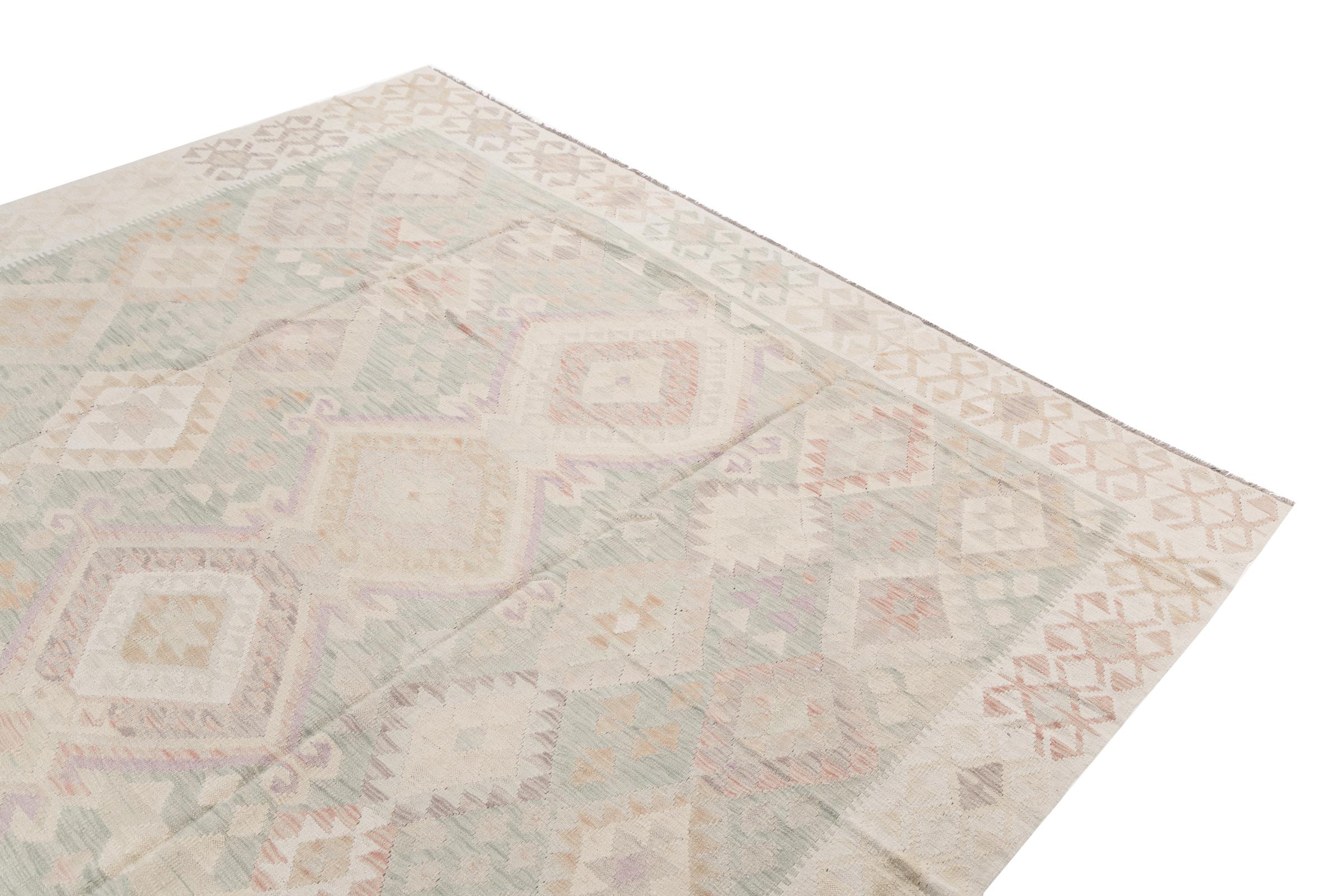 Our Kilim Afghan Heritage collection is in each and every detail exceptional. It combines the most traditional way of crafting a Kilim with contemporary modern design elements. Not only has this carpet been woven by hand, its wool has also been spun by hand like for Kilims centuries ago. The geometric patterns make this carpet a pure enrichment for modern interior concepts. It is going to deeply impress you and your guests. You won't get more value for your money than for this Kilim Heritage.