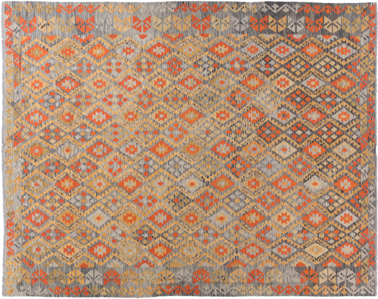 Carpet ID: 2941690048238 Size: 393x320 cm Thickness: ap. 3 mm Manufacturing: Woven by hand Pile: Handspun wool Warp: Sheep wool Origin: Afghanistan Age: New Weight: ap. 19 kg Also know as Kilim, Qilim, Chilim, Afgan, Afghán In stock: Unique - Only 1 in stock