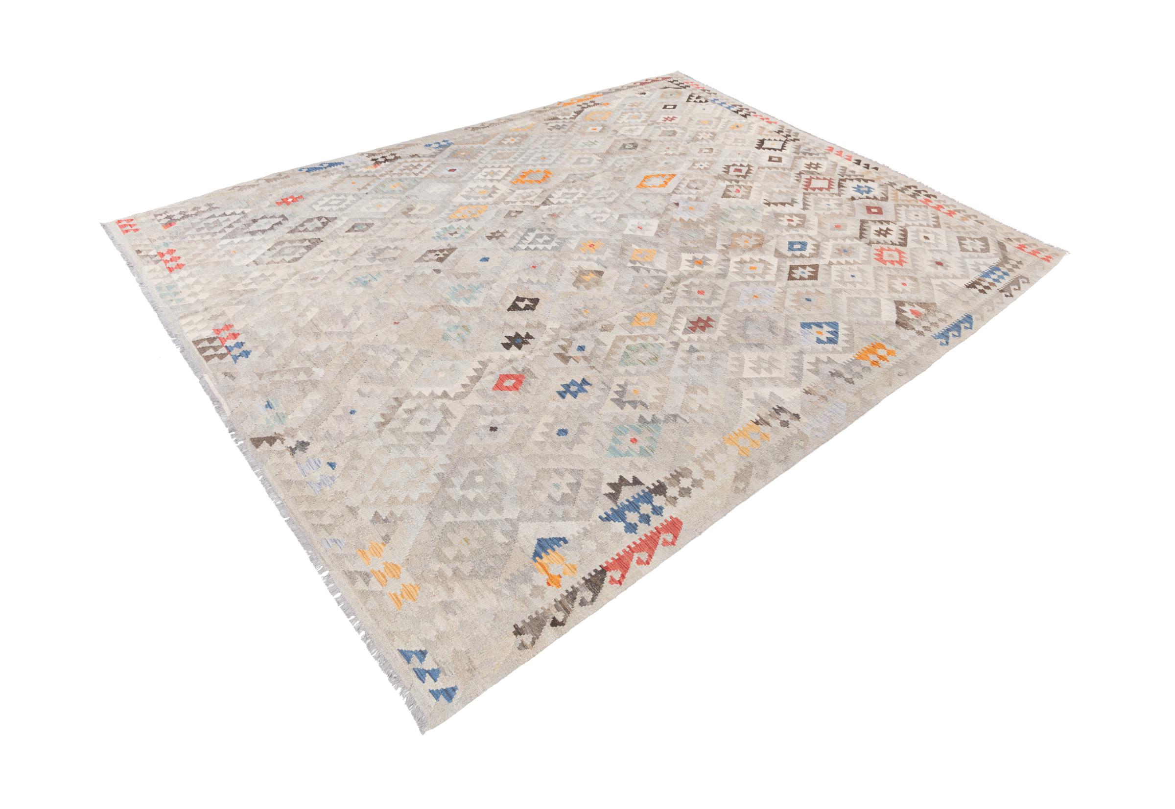 Our Kilim Afghan Heritage collection is in each and every detail exceptional. It combines the most traditional way of crafting a Kilim with contemporary modern design elements. Not only has this carpet been woven by hand, its wool has also been spun by hand like for Kilims centuries ago. The geometric patterns make this carpet a pure enrichment for modern interior concepts. It is going to deeply impress you and your guests. You won't get more value for your money than for this Kilim Heritage.