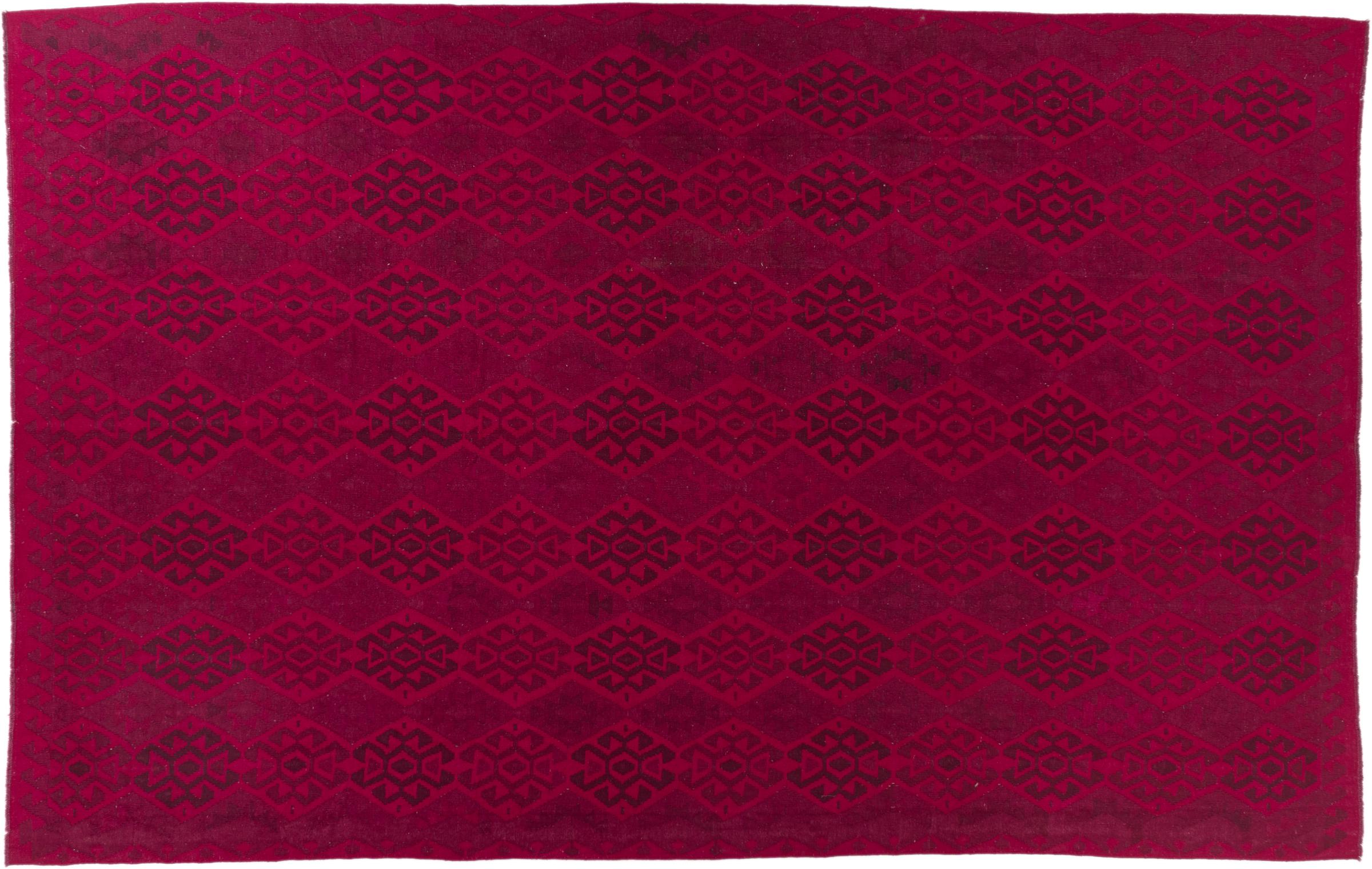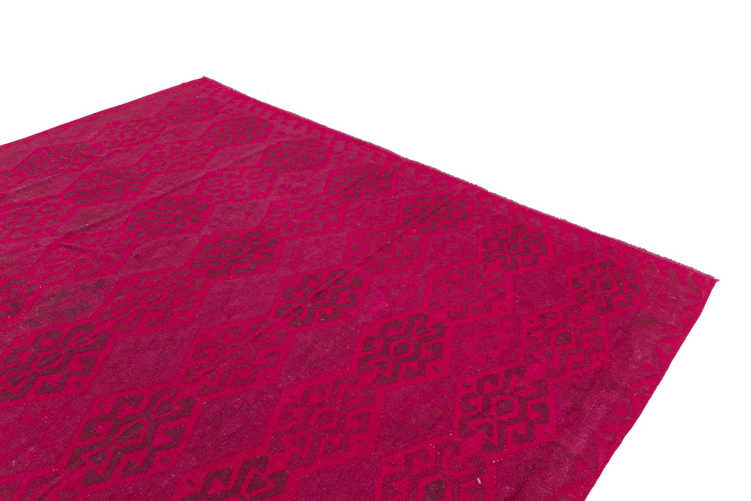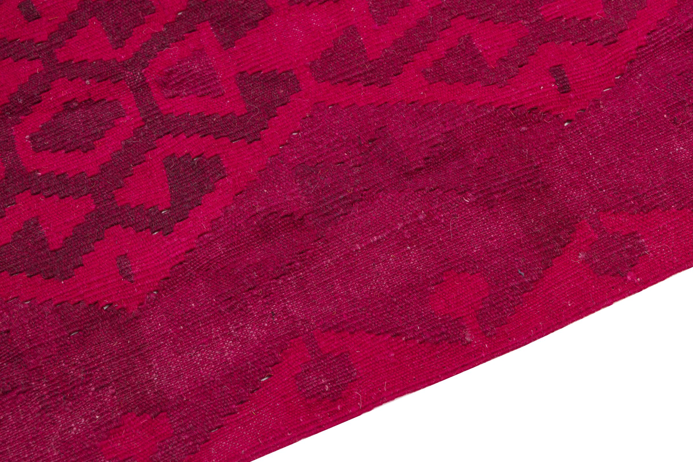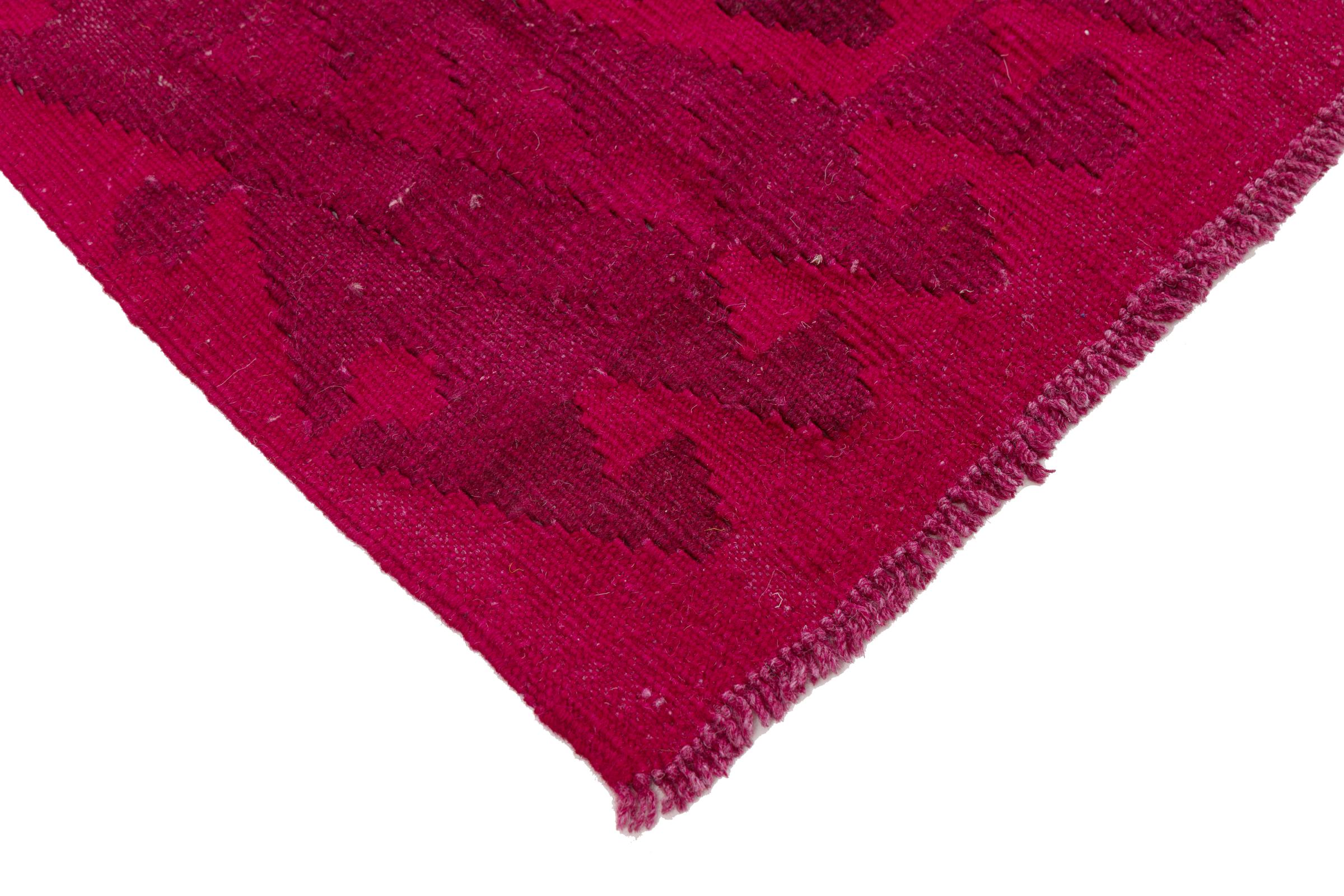This rug was made as a flat weave by hand on a loom. Flatweave is the term used to describe rugs that have no pile. As the name promises, these rugs are woven and not knotted. This results in a flat rug with a structured surface. Flatweaves are not as soft and usually thinner than knotted rugs. At the same time they are much less complex to manufacture and can usually be laid out from both sides (front and back). Their patterns are usually geometric, which is determined by the fabric.