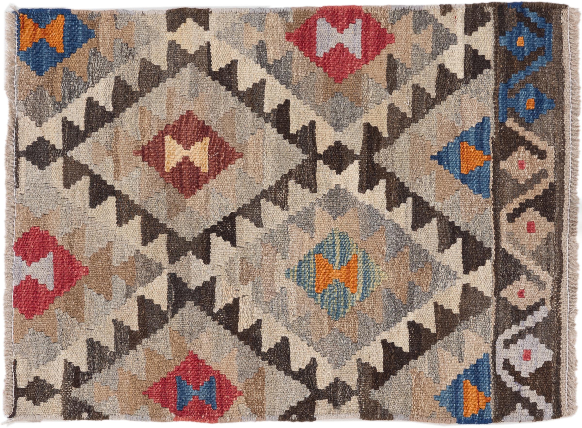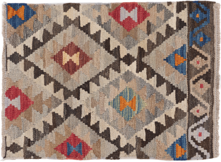 Carpet ID: 2948020042024 Size: 78x58 cm Thickness: ap. 3 mm Manufacturing: Woven by hand Pile: Handspun wool Warp: Sheep wool Origin: Afghanistan Age: New Weight: ap. 1 kg Also know as Kilim, Qilim, Chilim, Afgan, Afghán In stock: Unique - Only 1 in stock