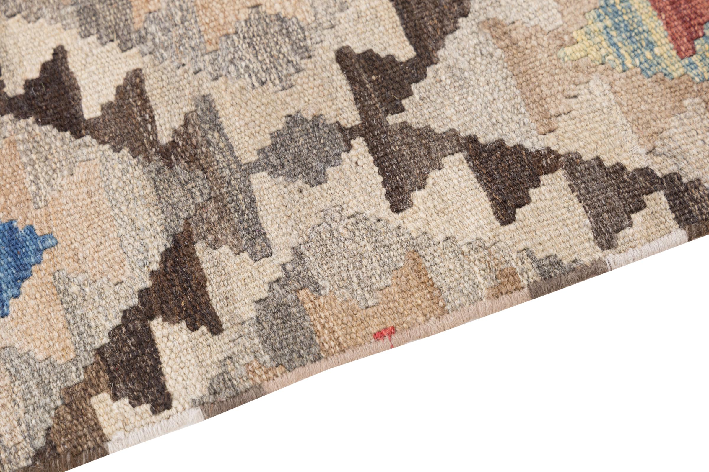 Our Kilim Afghan Heritage collection is in each and every detail exceptional. It combines the most traditional way of crafting a Kilim with contemporary modern design elements. Not only has this carpet been woven by hand, its wool has also been spun by hand like for Kilims centuries ago. The geometric patterns make this carpet a pure enrichment for modern interior concepts. It is going to deeply impress you and your guests. You won't get more value for your money than for this Kilim Heritage.